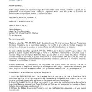 Documento que constituye en la actualidad la norma más importante del país en materia ambiental, pues en ésta se regulan aquellos temas necesarios para una gestión ambiental adecuada. Entre otros, el COA aborda temas como cambio climático, áreas protegidas, vida silvestre, patrimonio forestal, calidad ambiental, gestión de residuos, incentivos ambientales, zona marino costera, manglares, acceso a recursos genéticos, bioseguridad, biocomercio, etc.