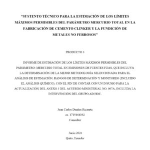 SUSTENTO TÉCNICO PARA LA DETERMINACIÓN DE LÍMITES MÁXIMOS PERMISIBLES DEL PARÁMETRO “MERCURIO TOTAL” EN EMISIONES GASEOSAS PRODUCIDAS EN FUENTES FIJAS COMO PARTE DEL PROCESO DE FABRICACIÓN DE CEMENTO CLINKER Y FUNDICIÓN DE METALES NO FERROSOS