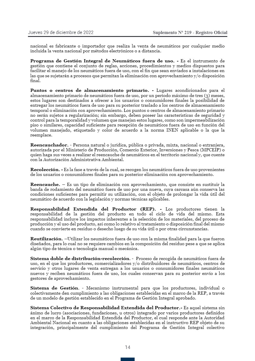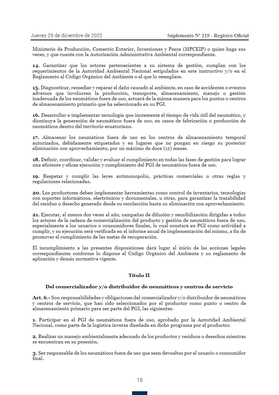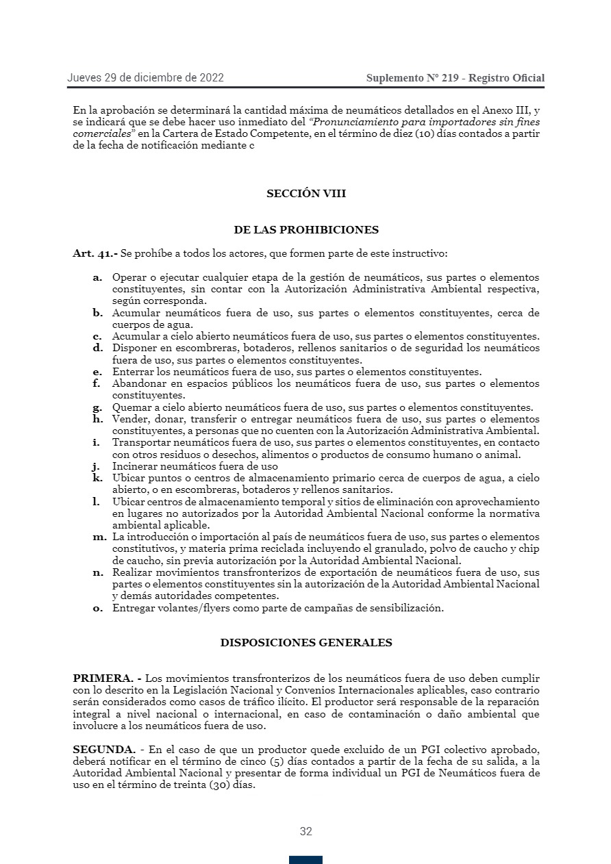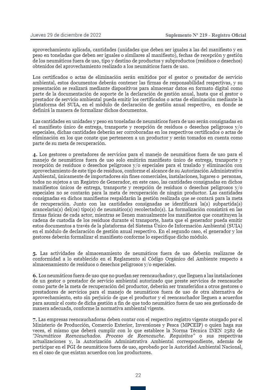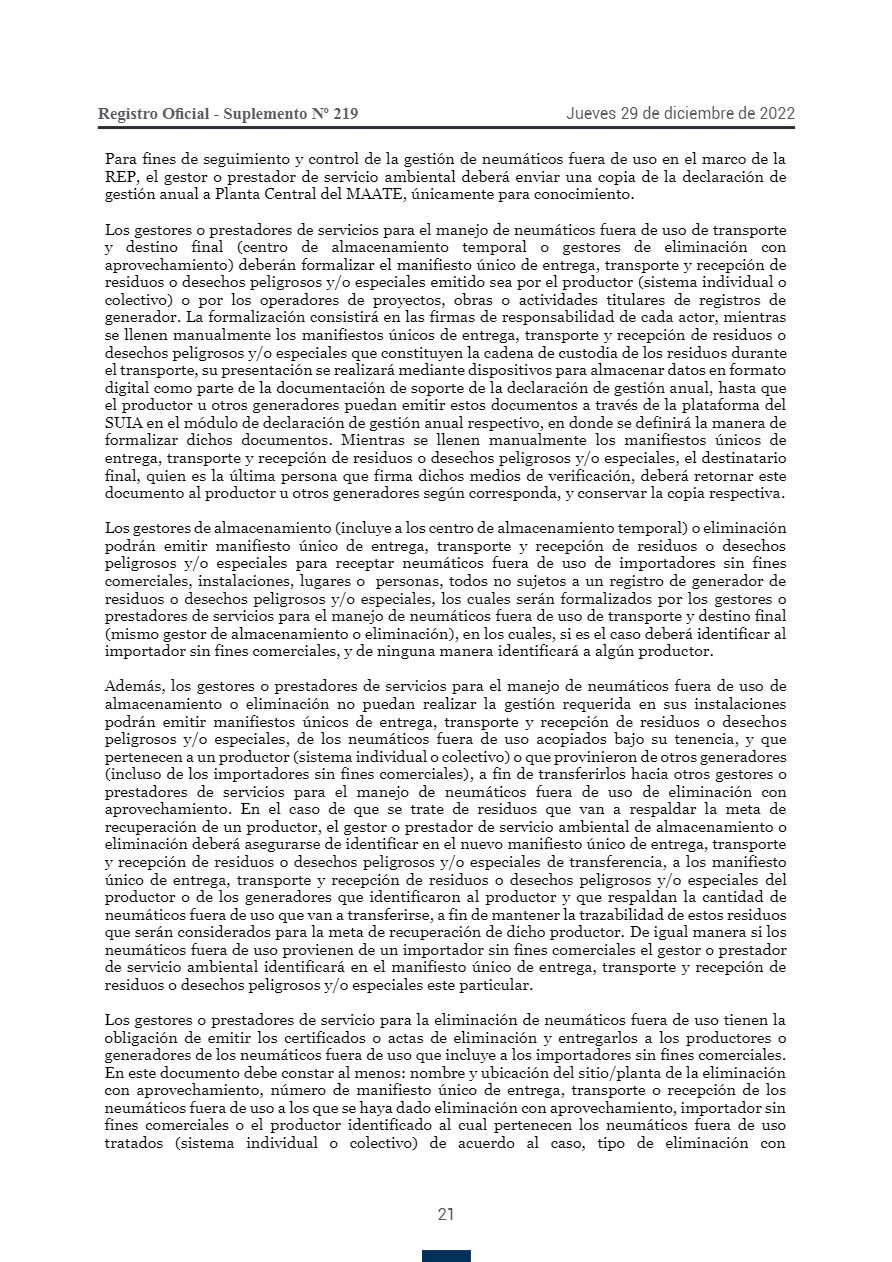 Documento que describe la gestión integral de los neumáticos fuera de uso (NFU)