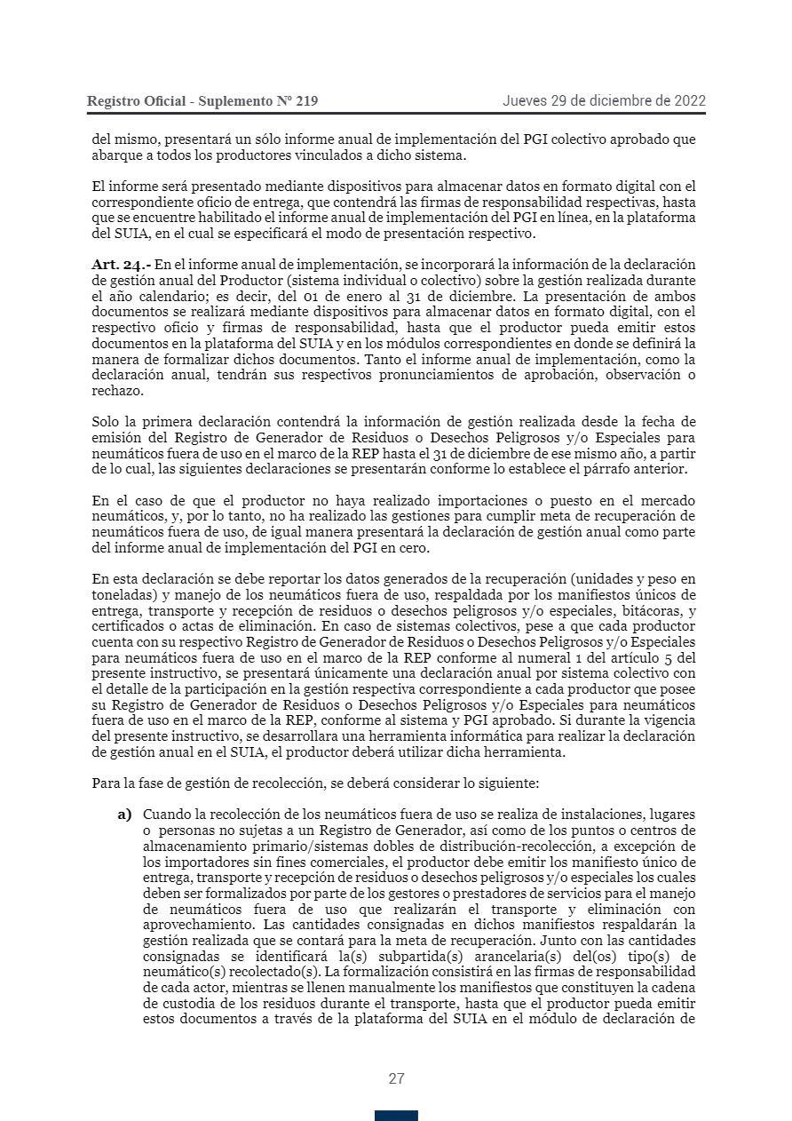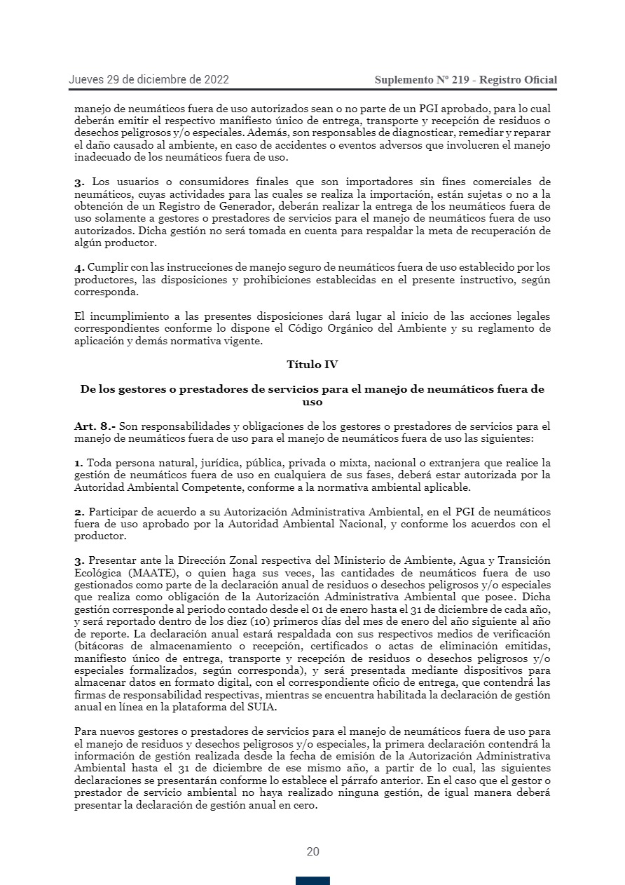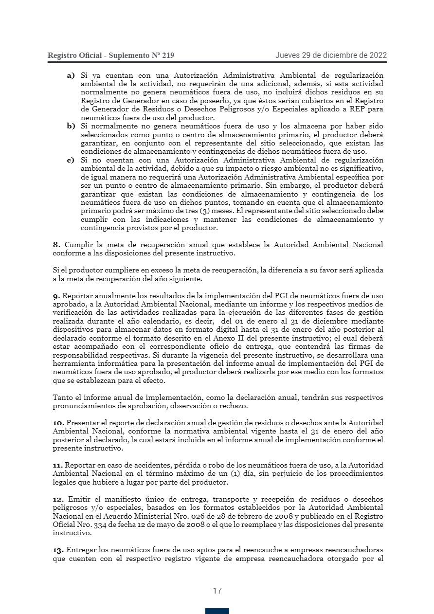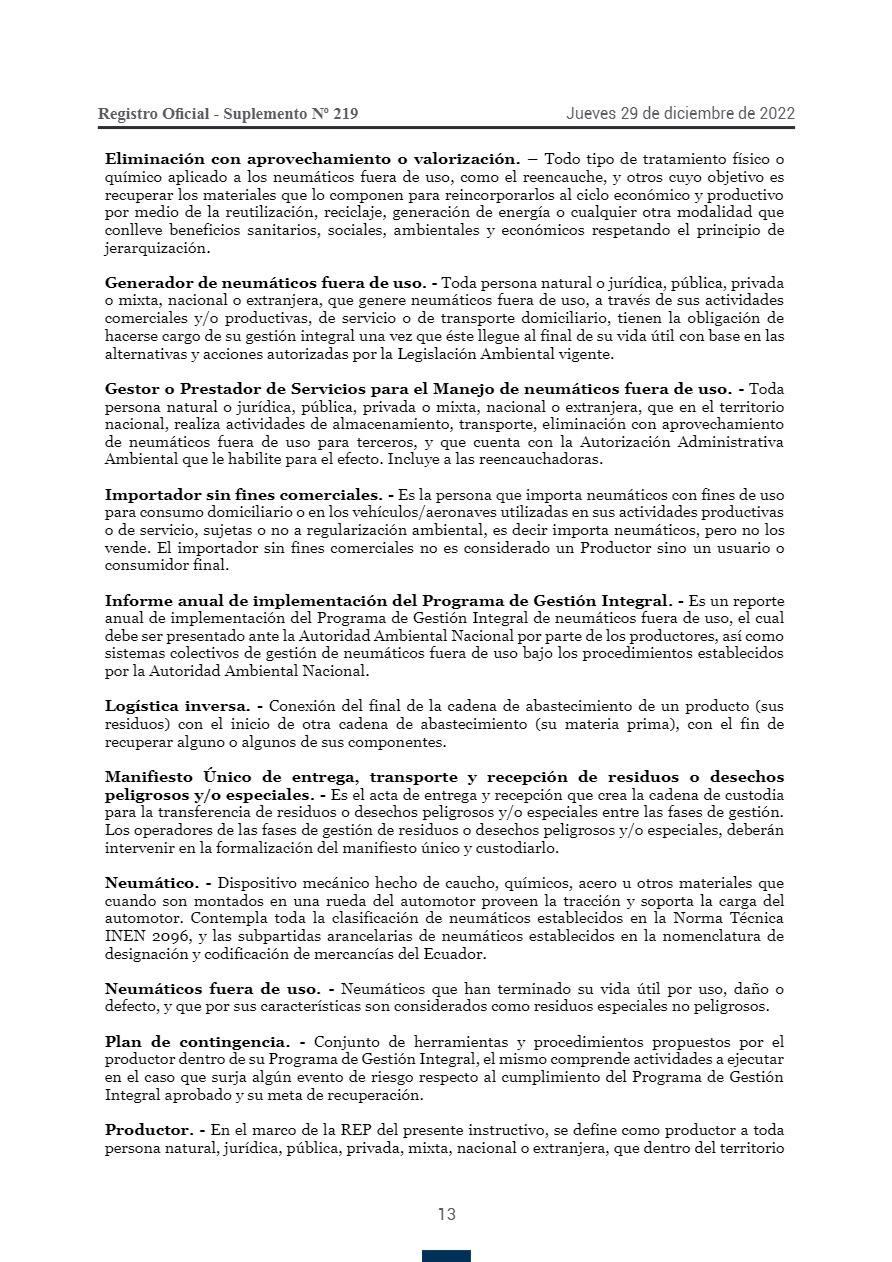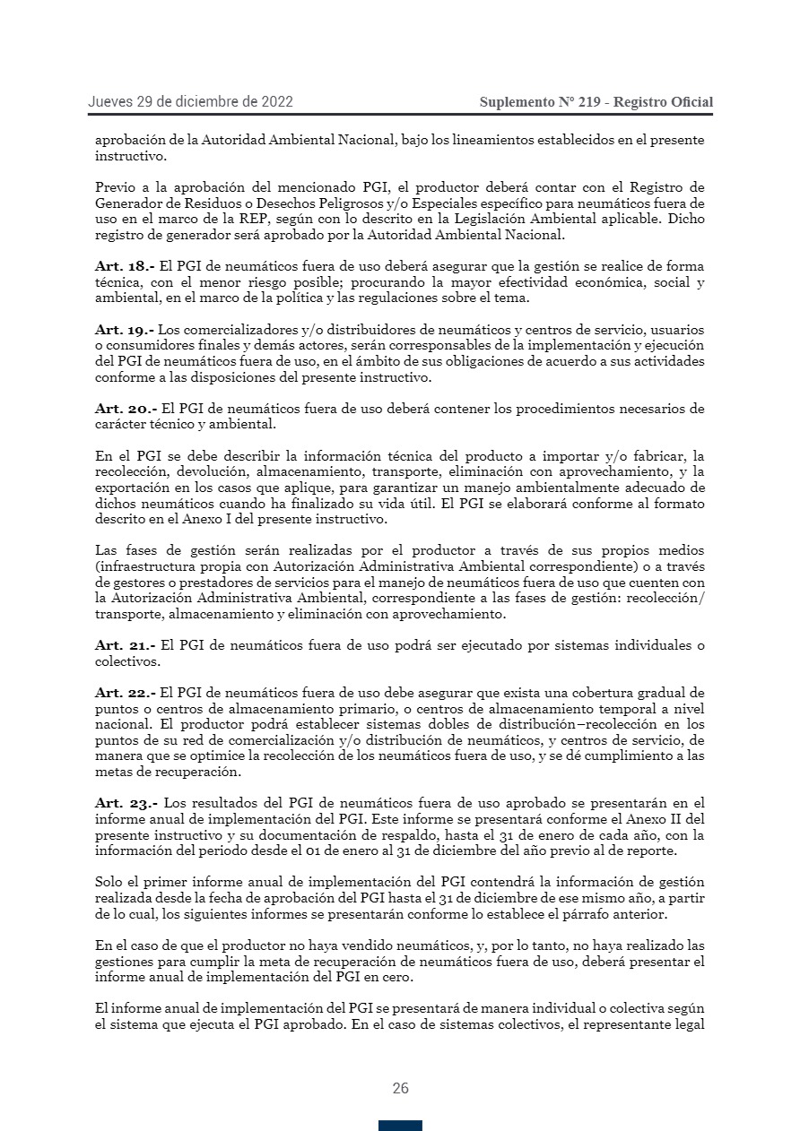 Documento que describe la gestión integral de los neumáticos fuera de uso (NFU)