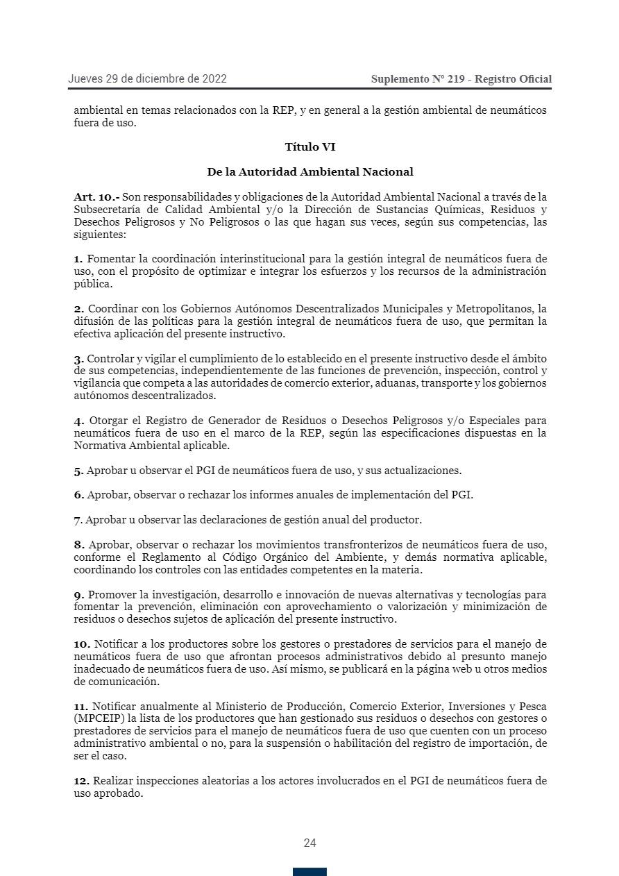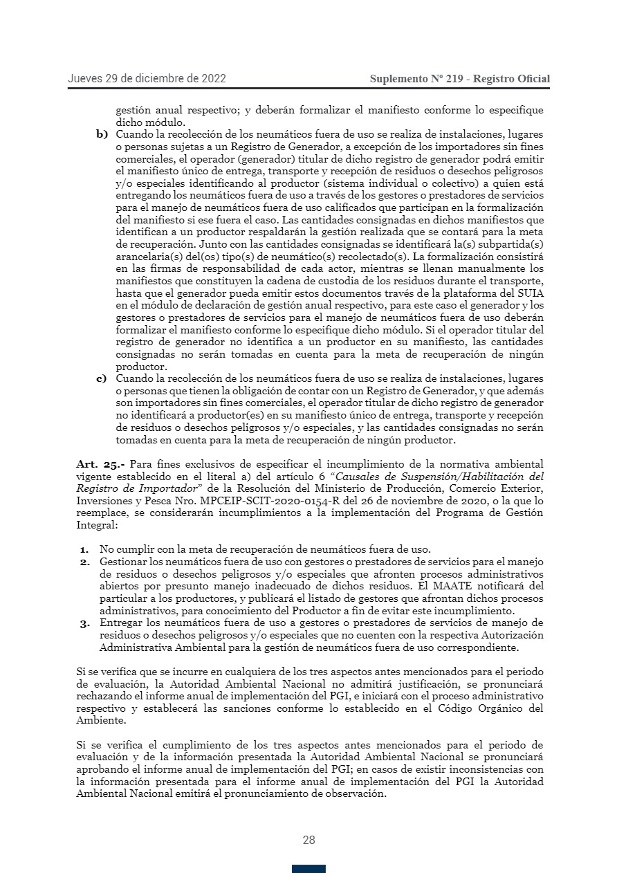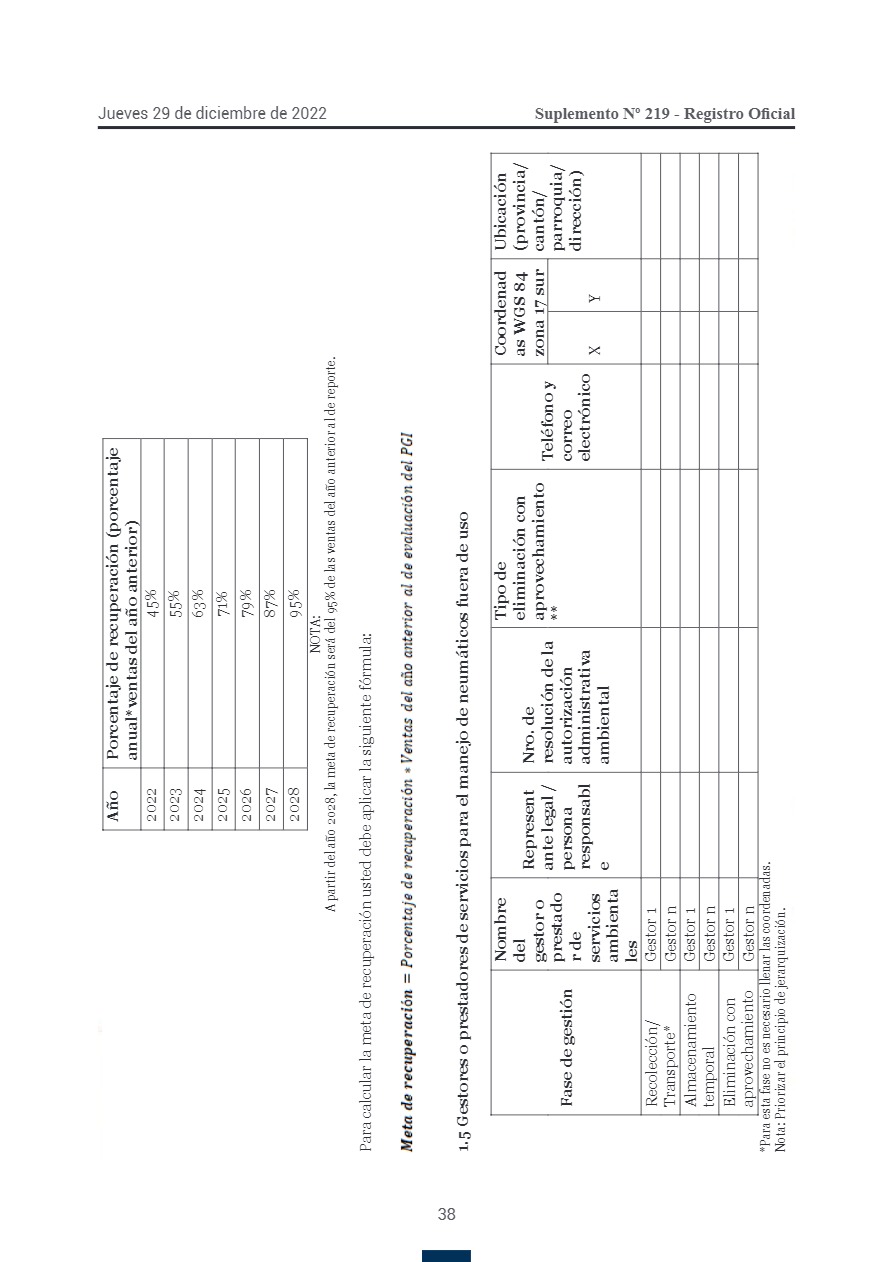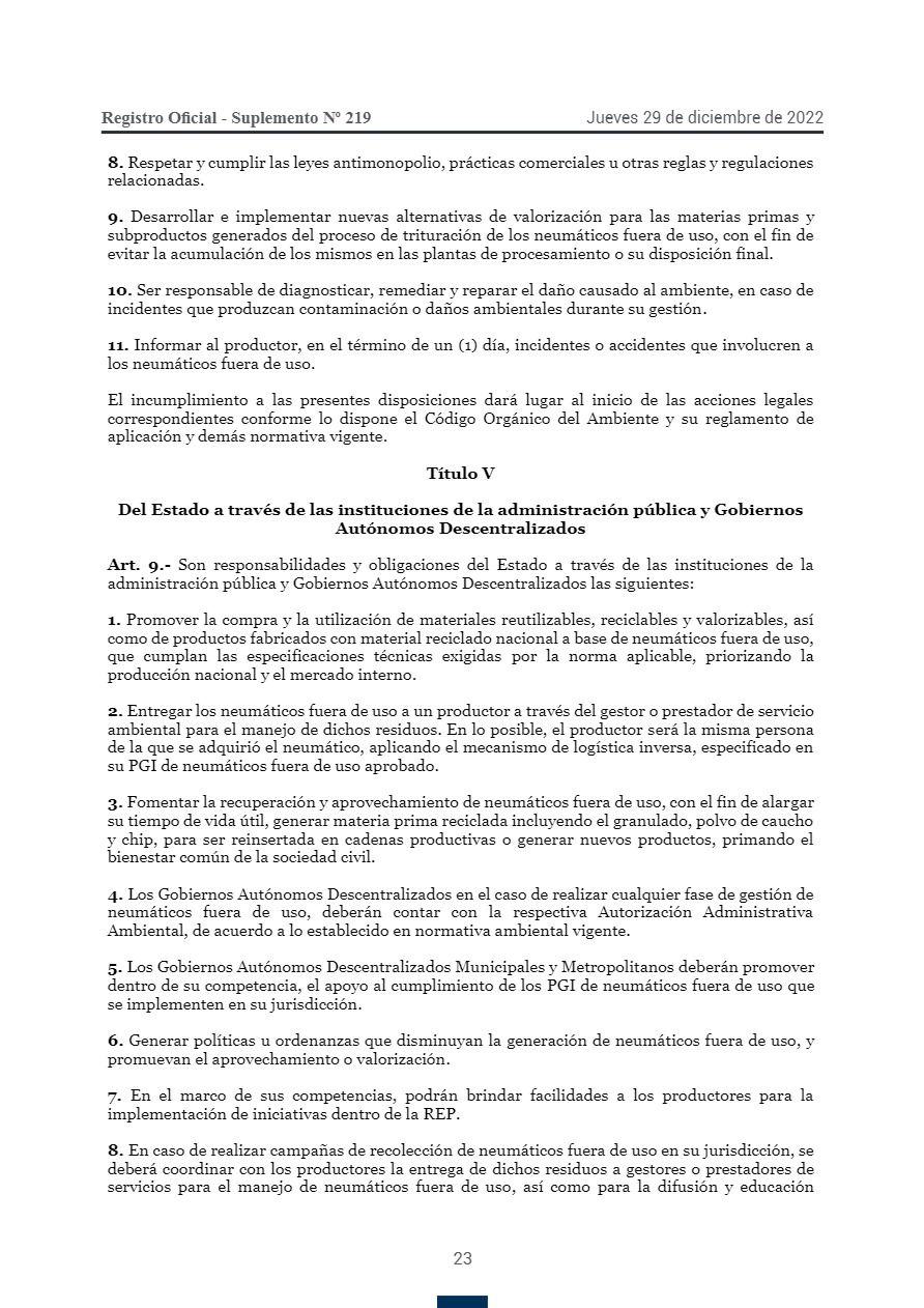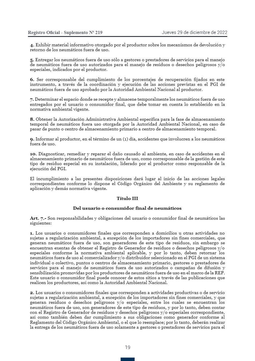 Documento que describe la gestión integral de los neumáticos fuera de uso (NFU)