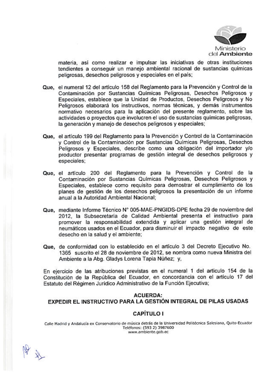 El presente instructivo tiene como objeto establecer las disposiciones, requisitos y lineamientos ambientales de la aplicación de la Responsabilidad Extendida del Productor de baterías ácido plomo sobre la gestión integral de las baterías ácido plomo usadas (BAPU) desde su importación o generación, recolección/transporte, almacenamiento y eliminación mediante el aprovechamiento.