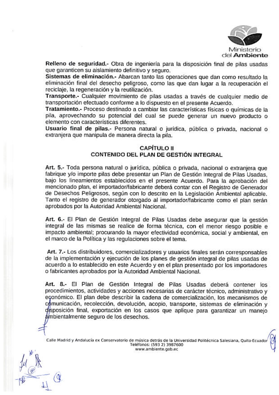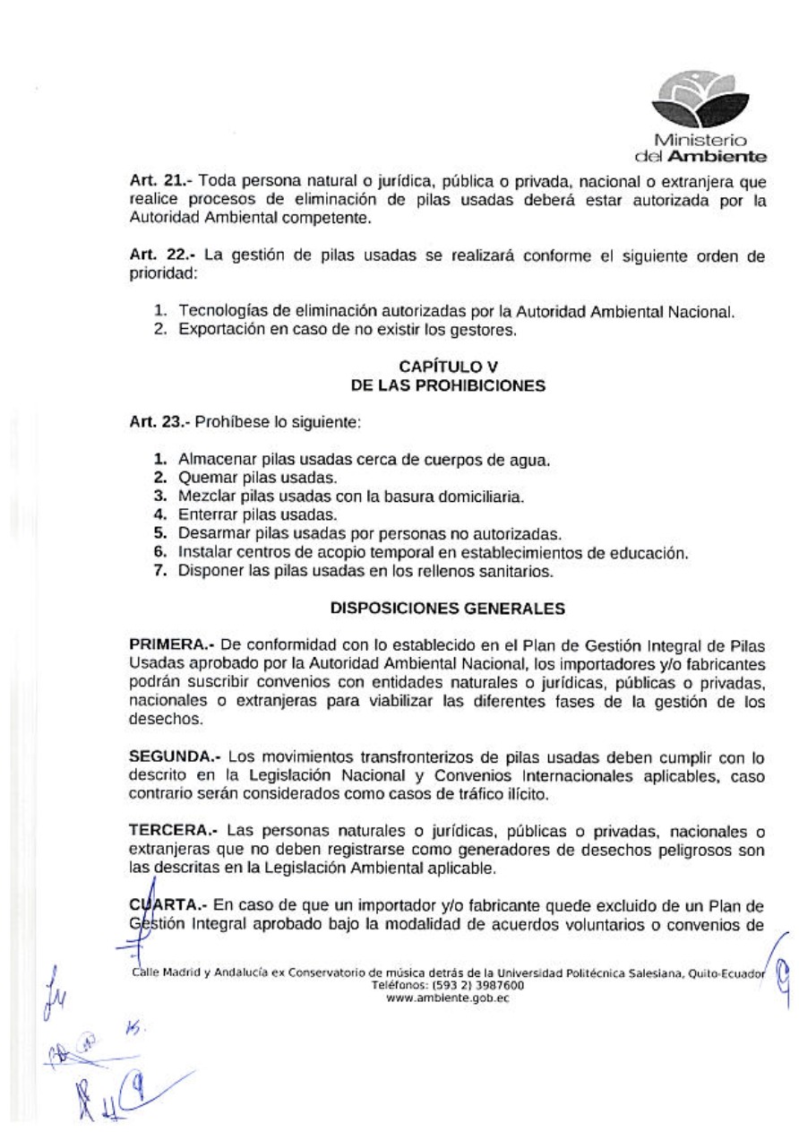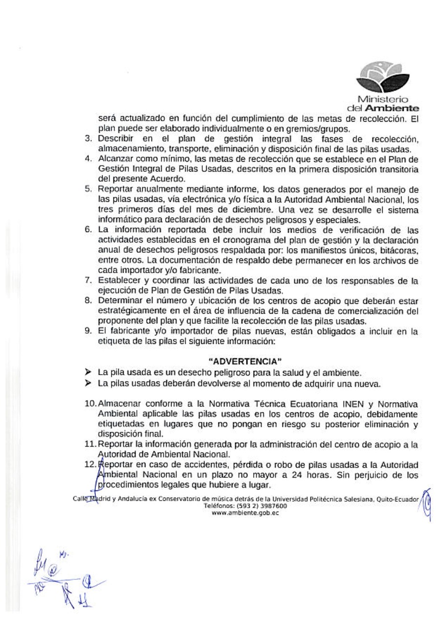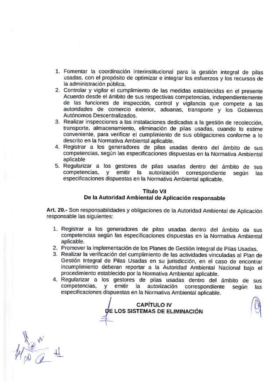 Toda persona natural o jurídica, pública o privada, nacional o extranjera que dentro del territorio nacional participen en la fabricación, importación, siendo la comercialización, distribución y uso final corresponsables de la implementación y ejecución de los planes de gestión integral de pilas usadas.