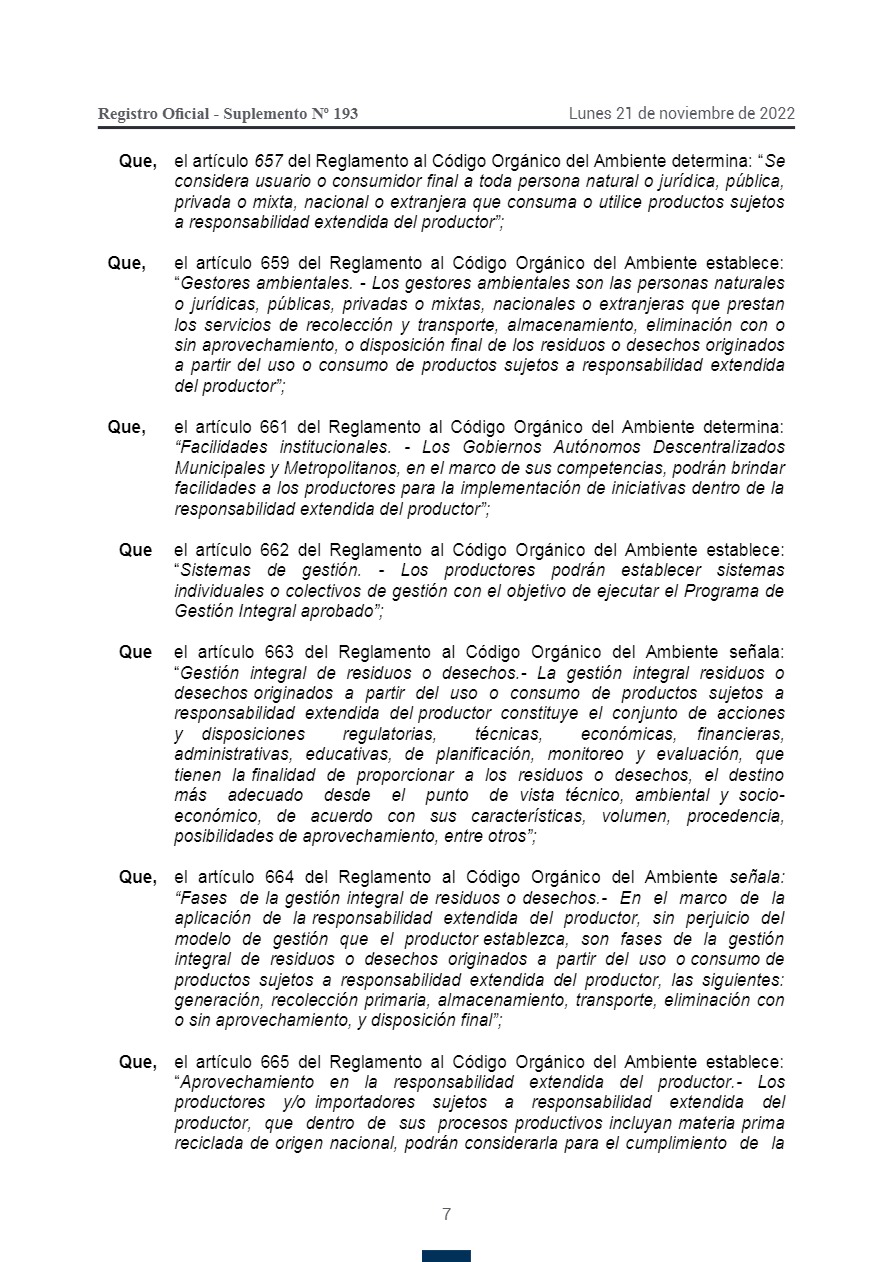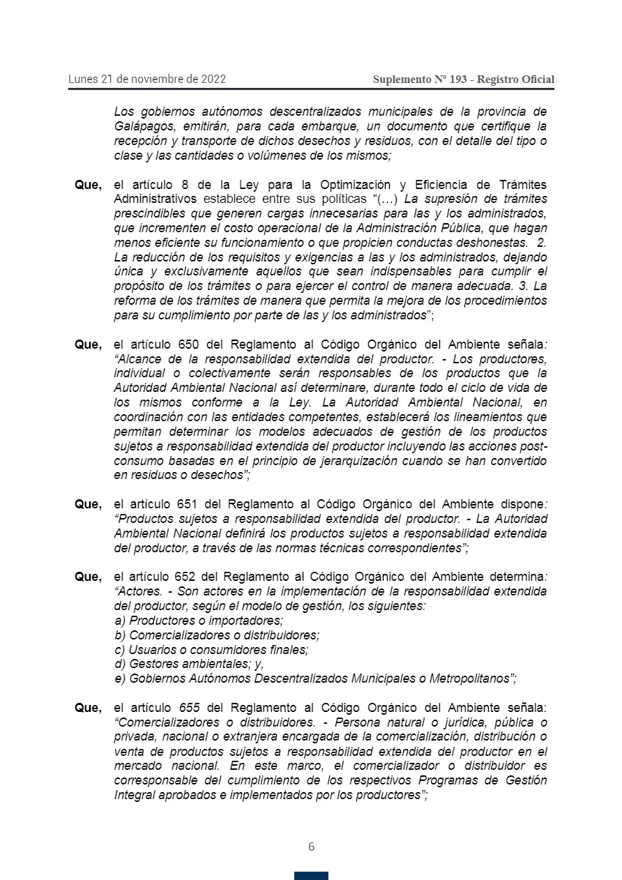 Toda persona natural o jurídica, pública o privada, nacional o extranjera que dentro del territorio nacional participen en la fabricación, representación, titular de registro, formulación, importación, envasado, de productos de uso agrícola, siendo la comercialización, distribución y uso final corresponsables de la implementación y ejecución de los planes de gestión integral de los desechos plásticos de uso agrícola.