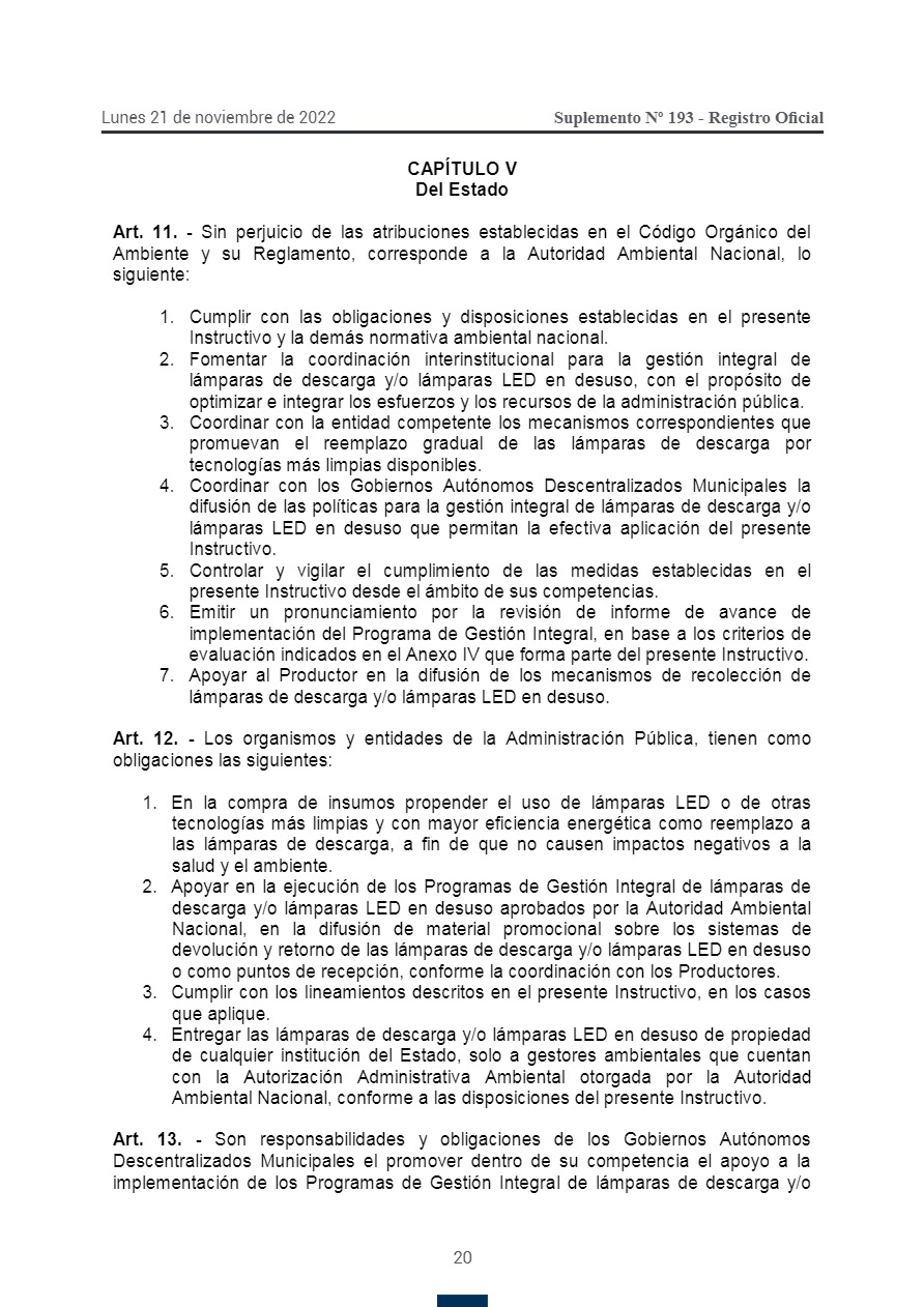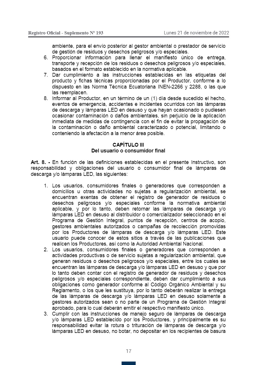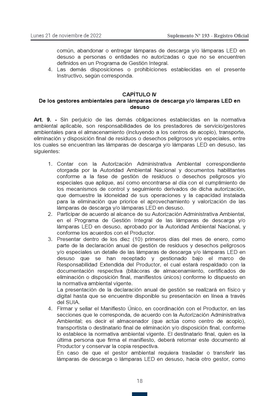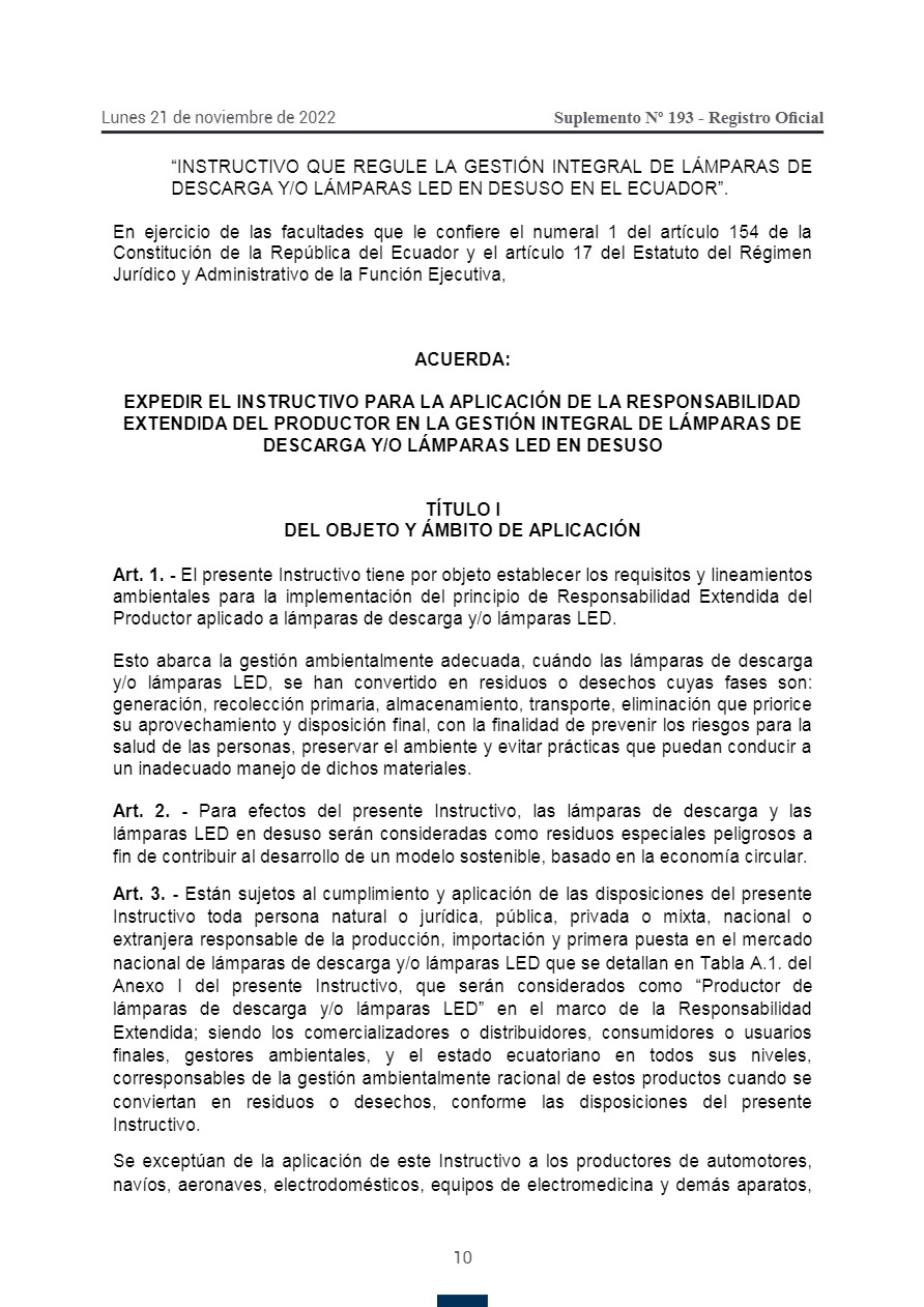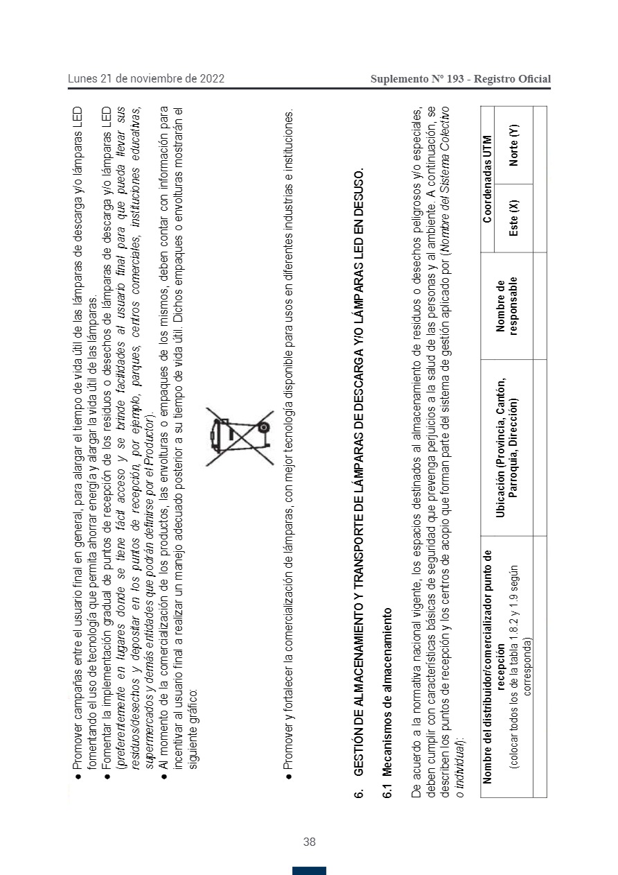 Documento que describe la gestión ambientalmente adecuada, cuándo las lámparas de descarga y/o lámparas LED, se han convertido en residuos o desechos con la finalidad de prevenir los riesgos para la salud de las personas, preservar el ambiente y evitar prácticas que puedan conducir a un inadecuado manejo de dichos materiales.