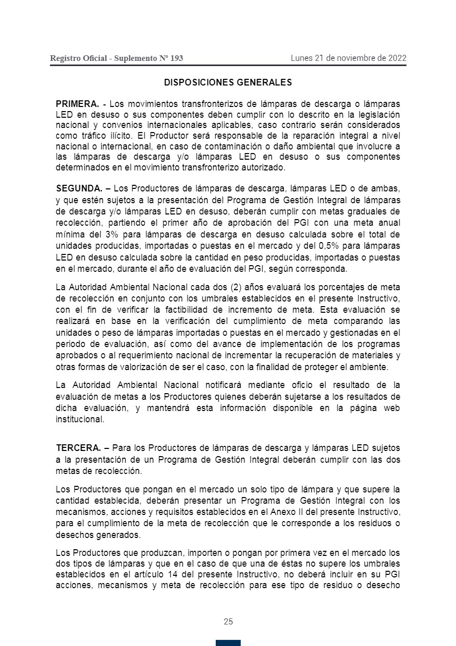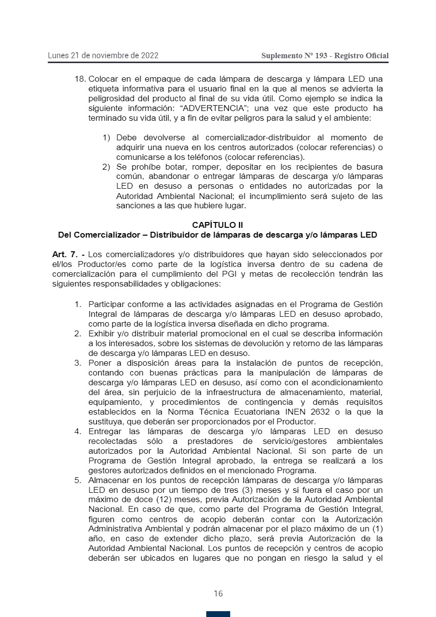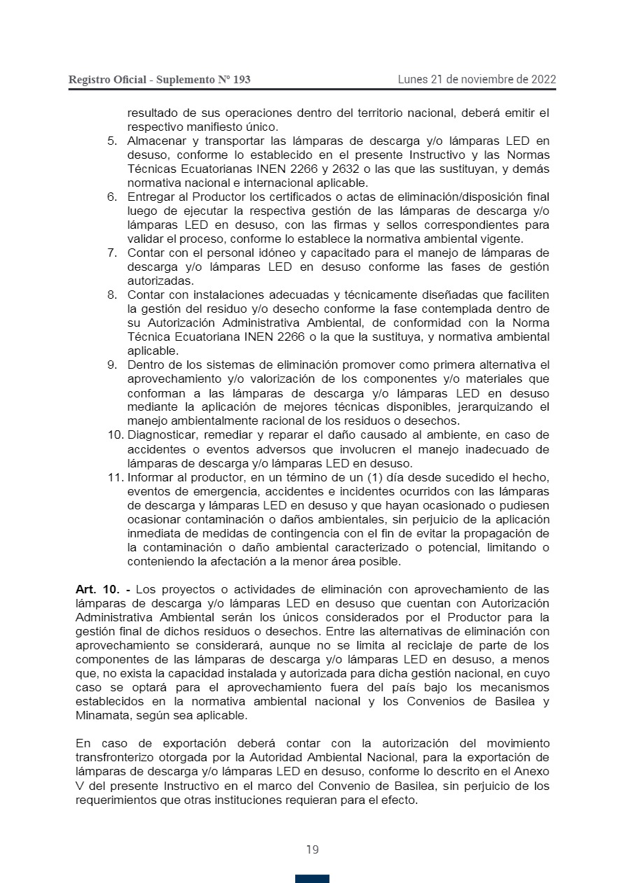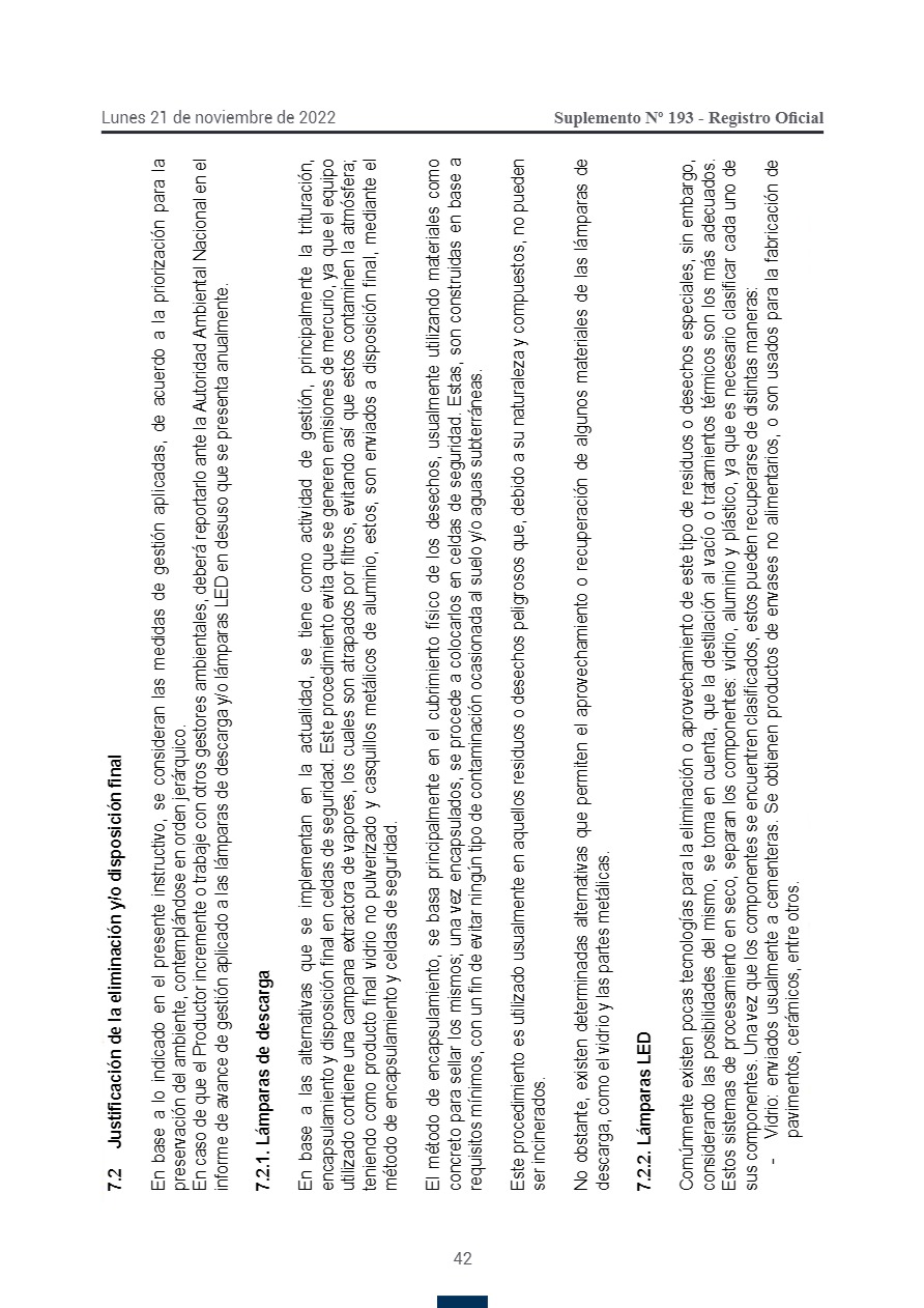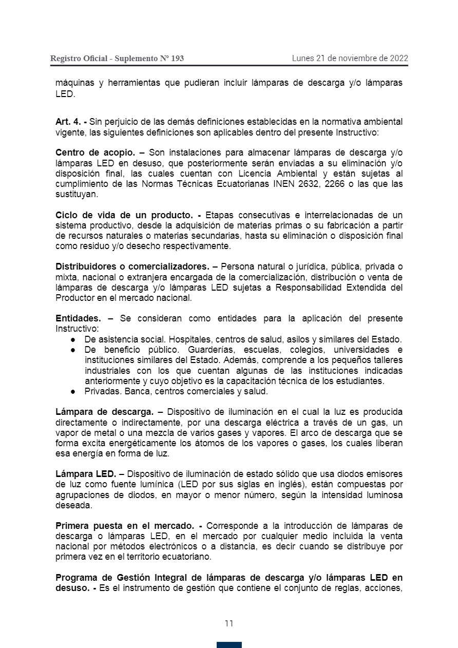 Documento que describe la gestión ambientalmente adecuada, cuándo las lámparas de descarga y/o lámparas LED, se han convertido en residuos o desechos con la finalidad de prevenir los riesgos para la salud de las personas, preservar el ambiente y evitar prácticas que puedan conducir a un inadecuado manejo de dichos materiales.