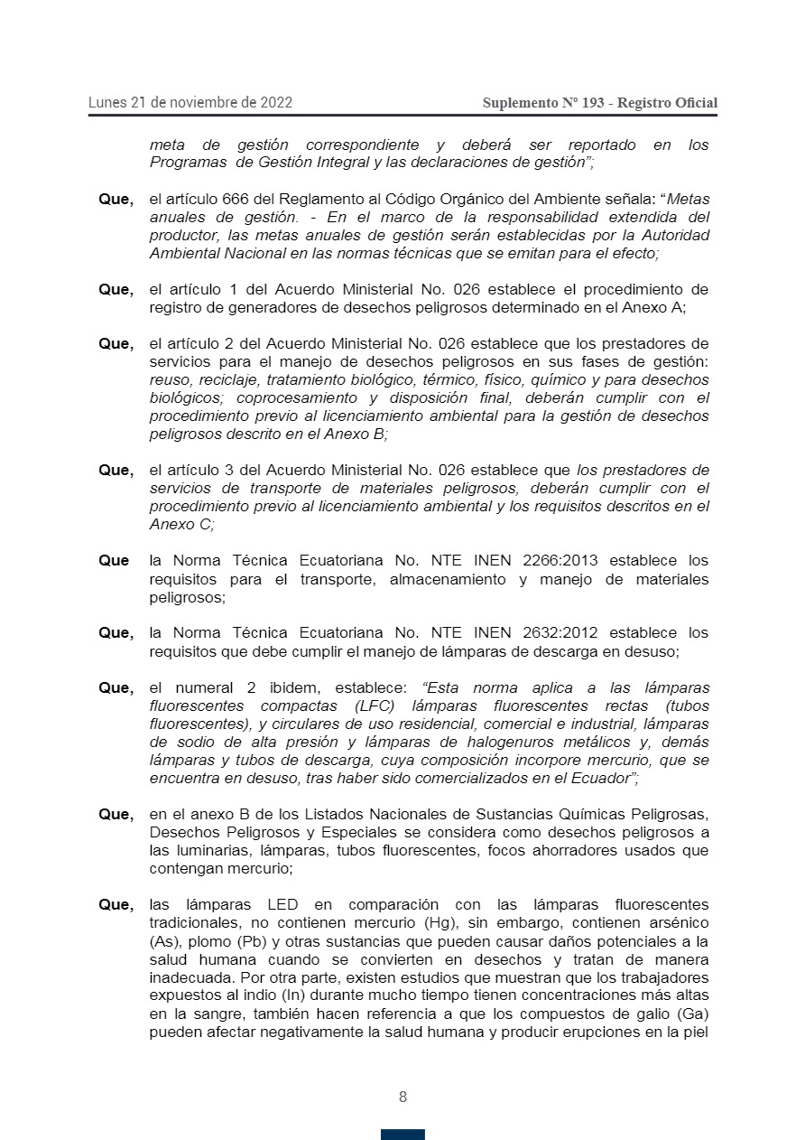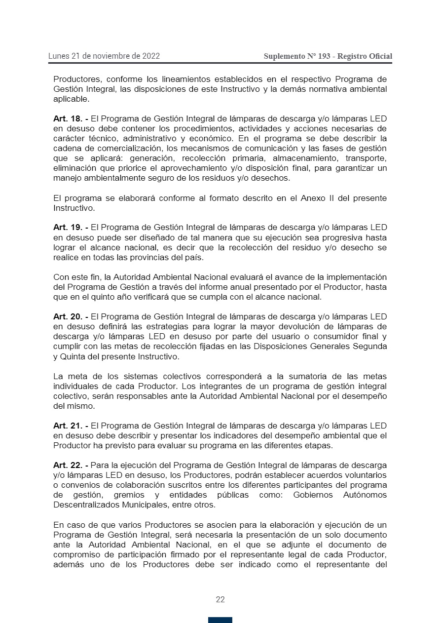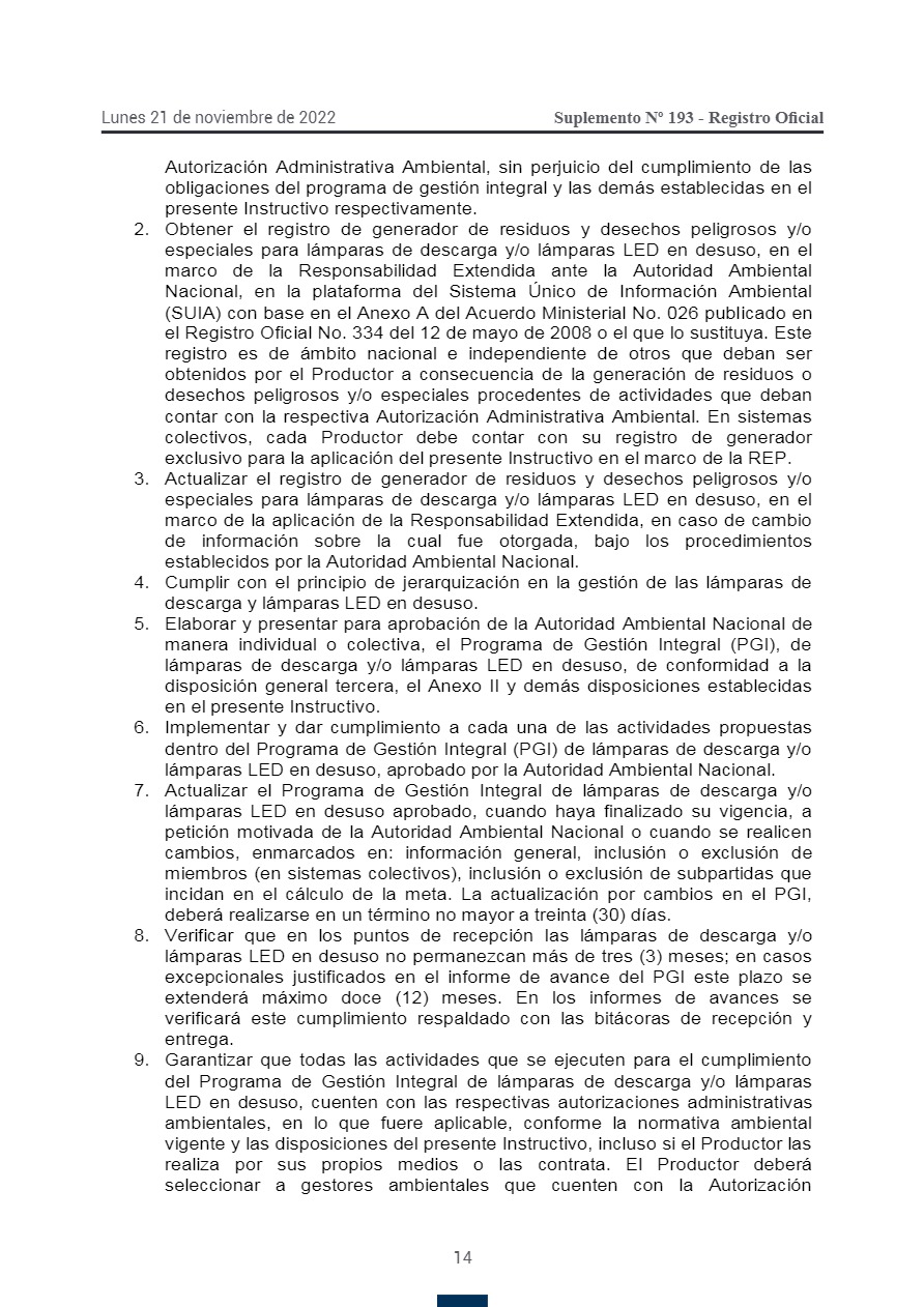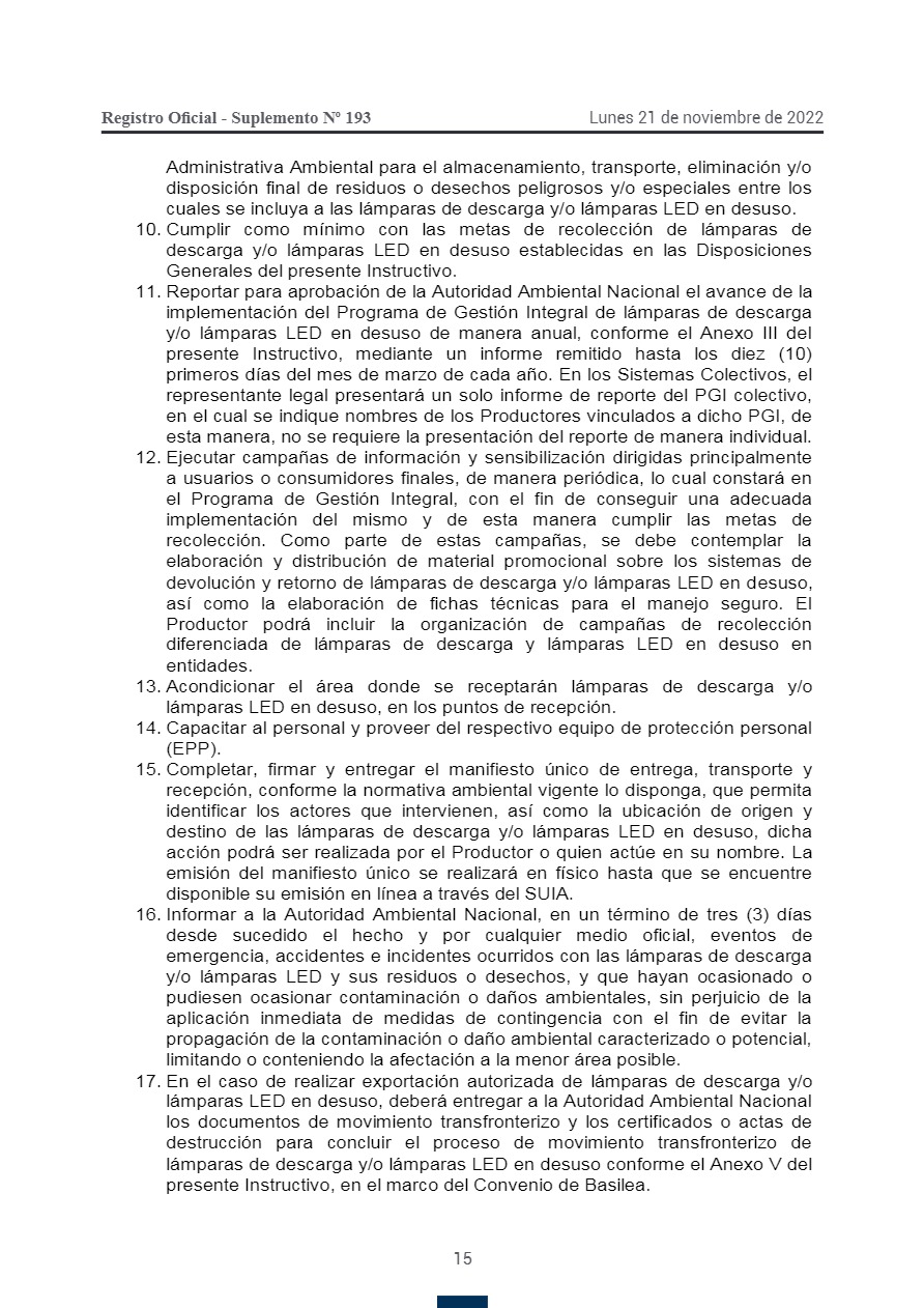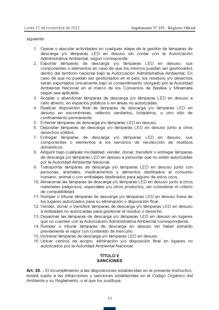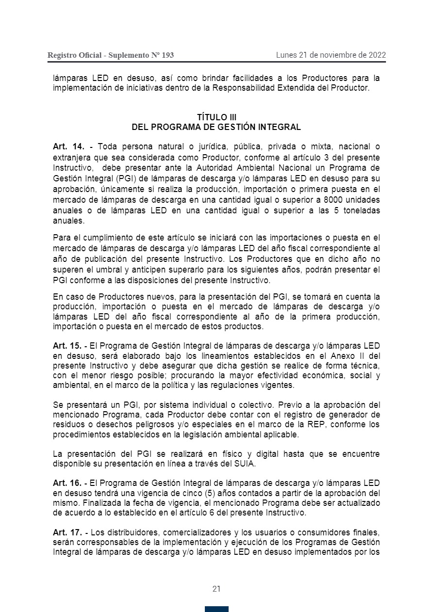 Documento que describe la gestión ambientalmente adecuada, cuándo las lámparas de descarga y/o lámparas LED, se han convertido en residuos o desechos con la finalidad de prevenir los riesgos para la salud de las personas, preservar el ambiente y evitar prácticas que puedan conducir a un inadecuado manejo de dichos materiales.