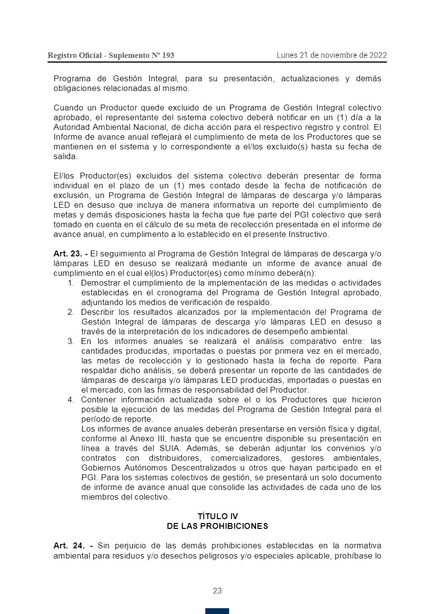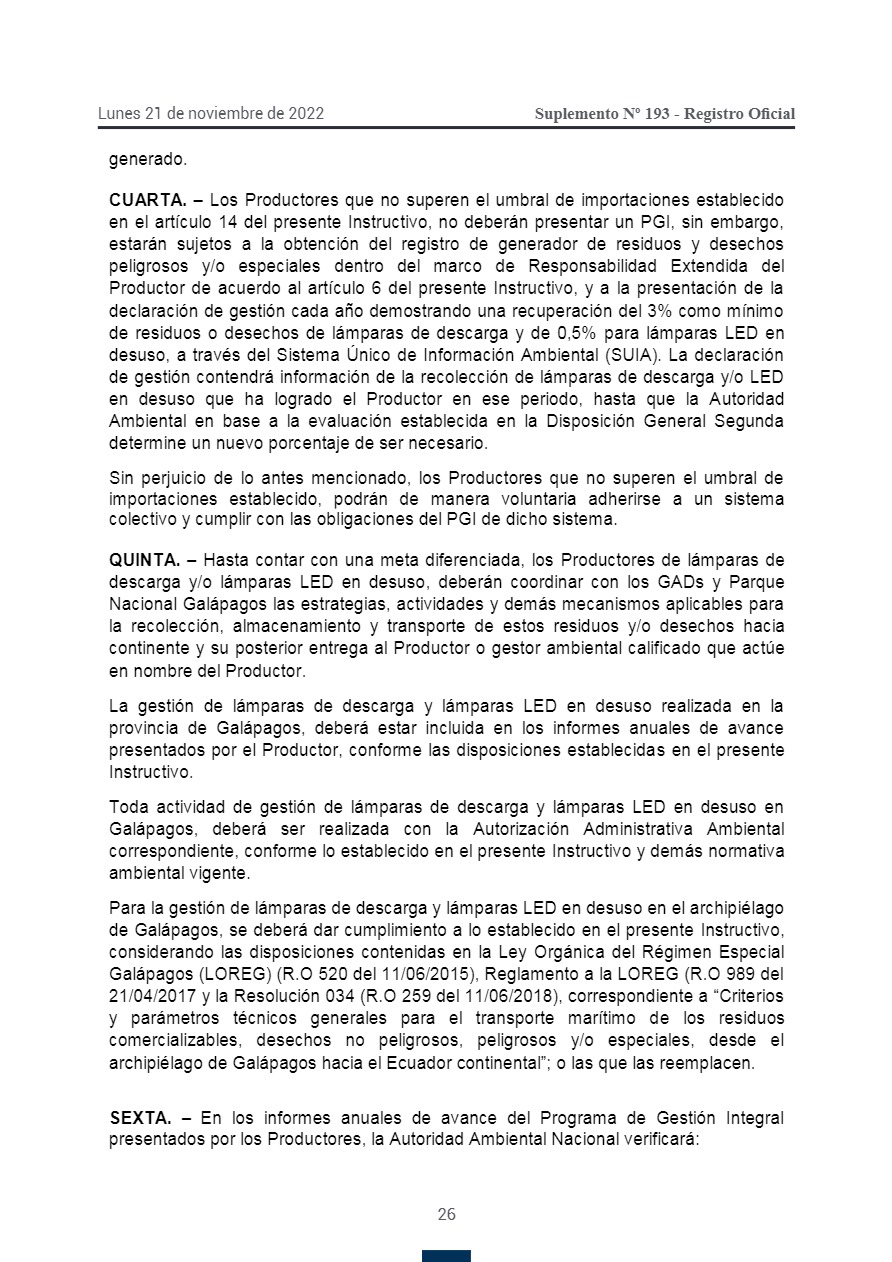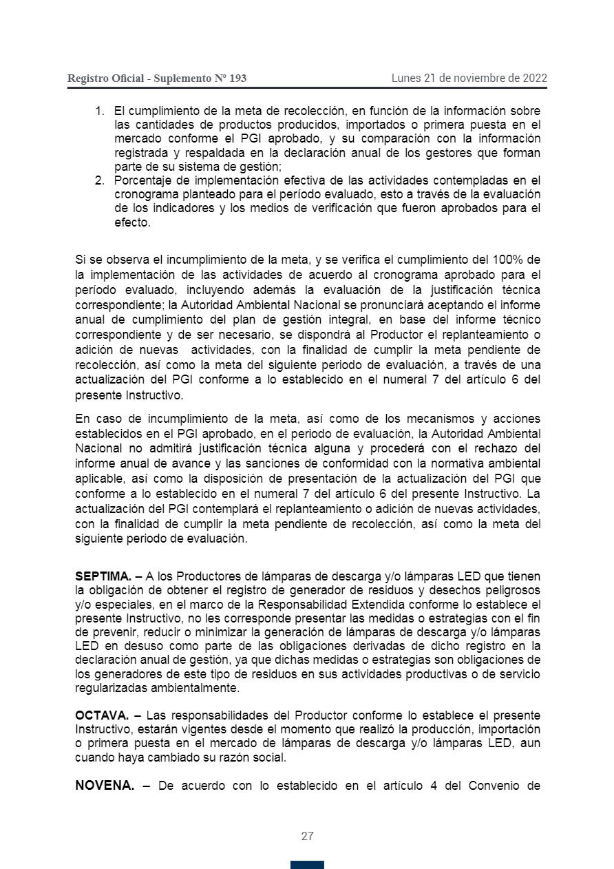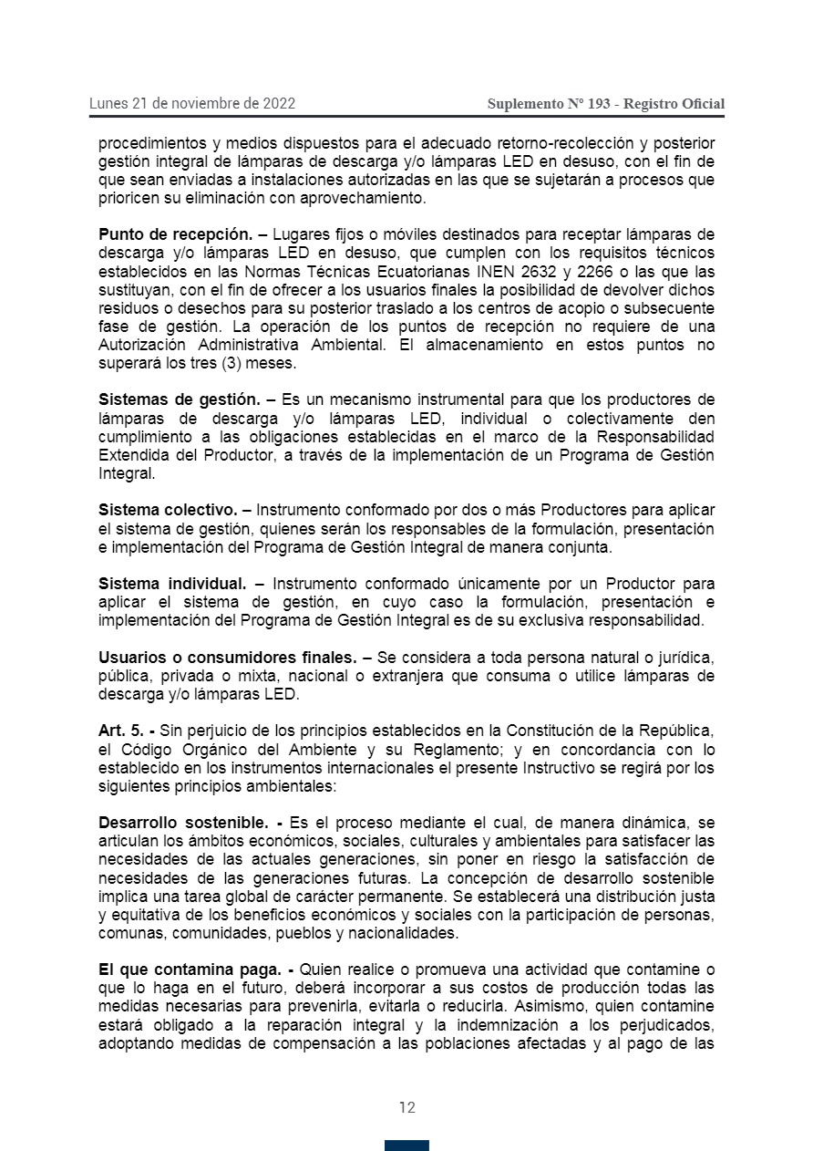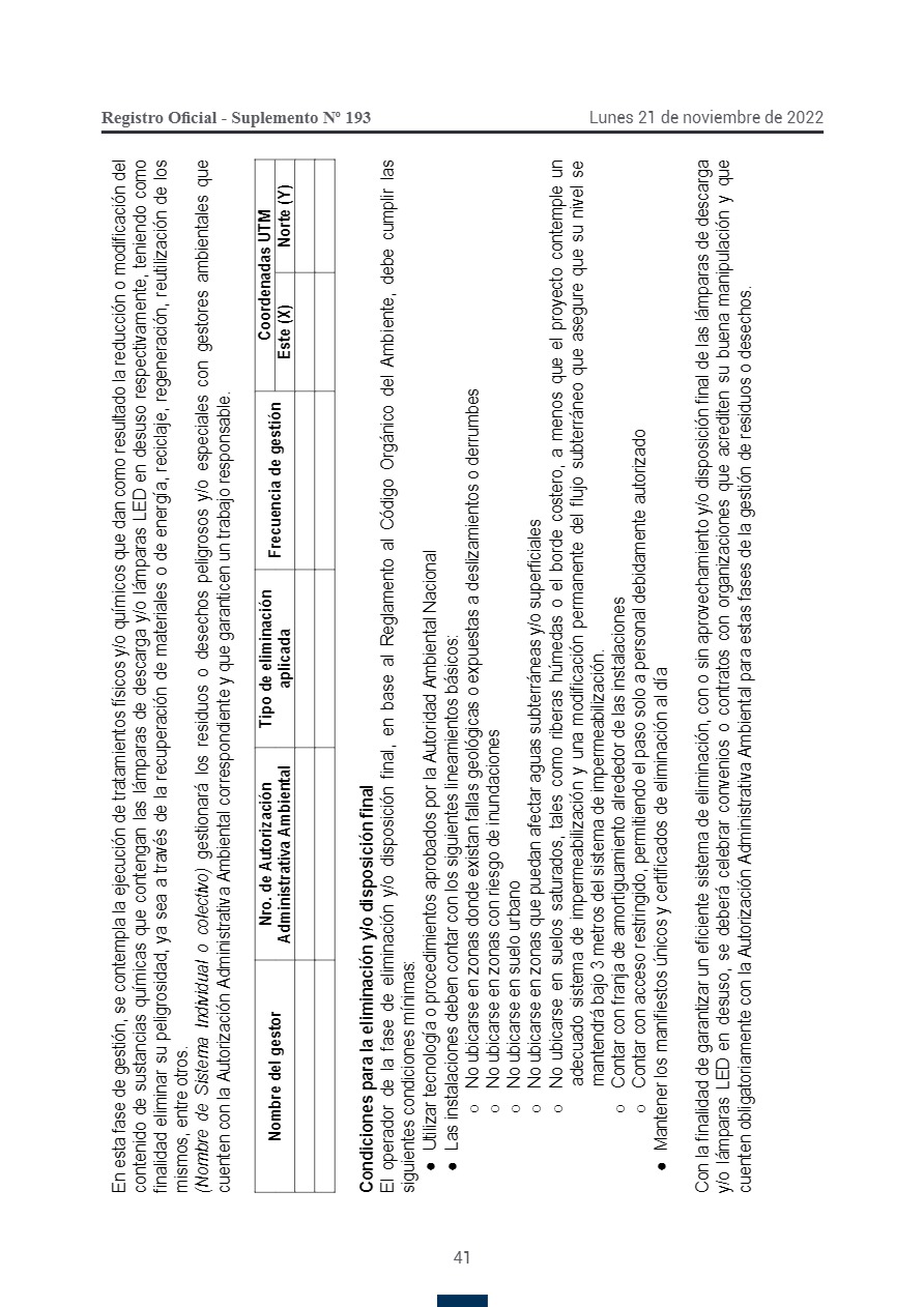 Documento que describe la gestión ambientalmente adecuada, cuándo las lámparas de descarga y/o lámparas LED, se han convertido en residuos o desechos con la finalidad de prevenir los riesgos para la salud de las personas, preservar el ambiente y evitar prácticas que puedan conducir a un inadecuado manejo de dichos materiales.