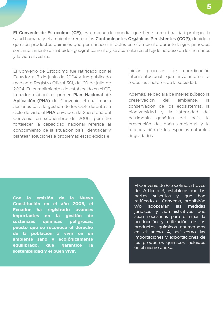 El PNA es un documento cuyo período de ejecución es de ocho años (2020 – 2028), es una actualización de los compromisos de nuestro país para la protección de la salud humana y del ambiente de los efectos nocivos de los Compuestos Orgánicos Persistentes (COP), en cumplimiento al artículo 7 del Convenio de Estocolmo sobre los Planes de Aplicación. Además, este plan entraña una mayor complejidad, en comparación con la versión anterior, ya que muchos de los nuevos COP son difíciles de identificar y controlar, por cuanto se encuentran como parte de una amplia gama de productos de uso cotidiano, o bien forman parte de un proceso productivo, cuyos usuarios muchas veces ignoran la presencia de estas sustancias, para los cual se plantean propuestas de acción a corto, mediano y largo plazo a nivel nacional para poder tomar acciones para su eliminación y sustitución por producto y procesos productivos más sanos y amigables con el ambiente.