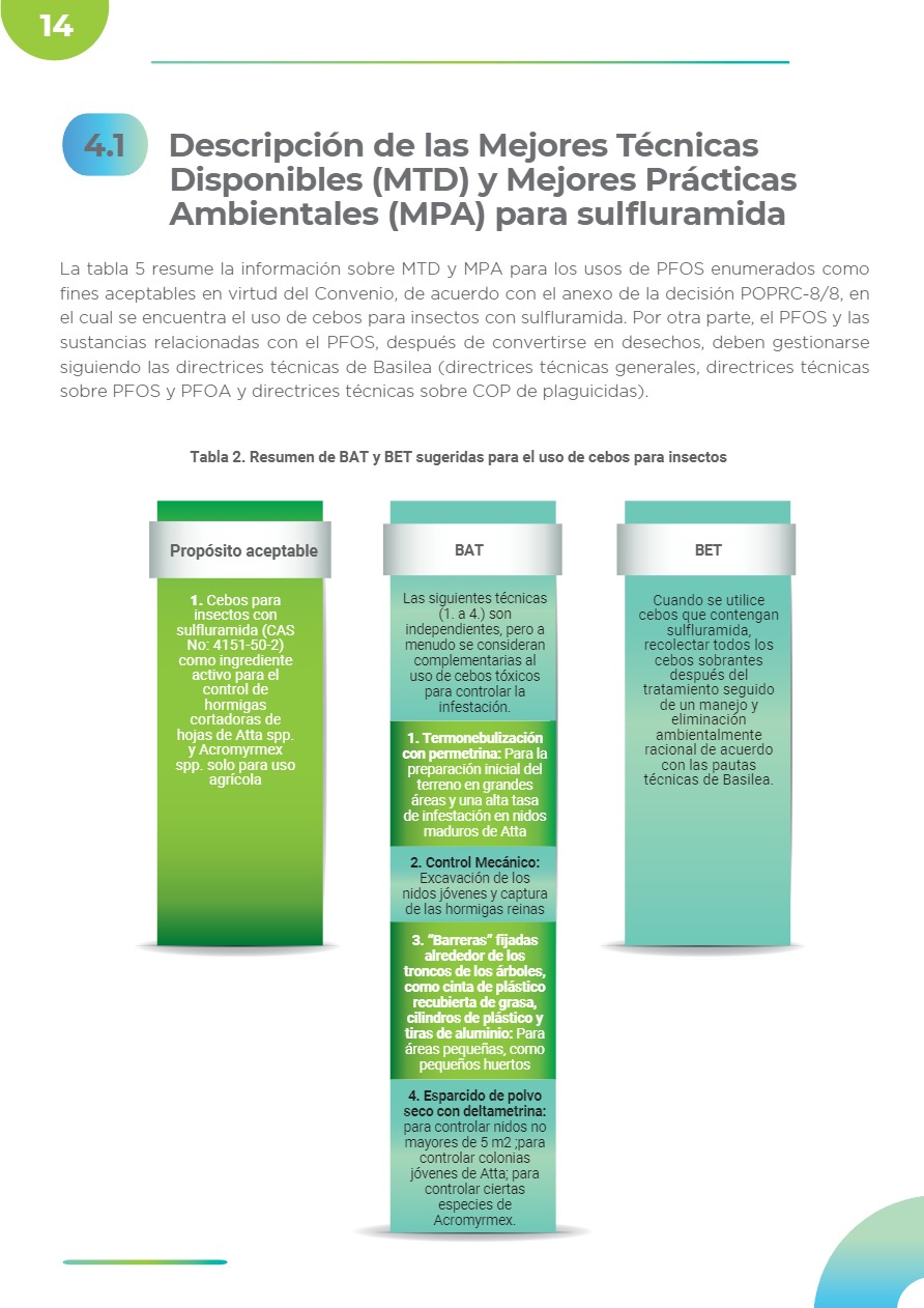 Guía de Mejores Técnicas Disponibles (MTD) y Mejores Prácticas Ambientales (MPA) para cebos para insectos con sulfluramida.