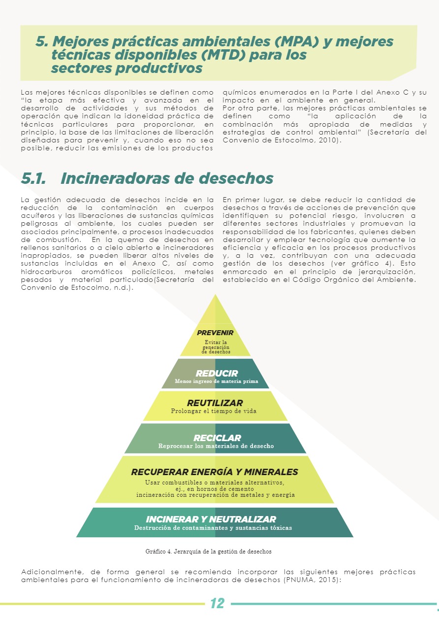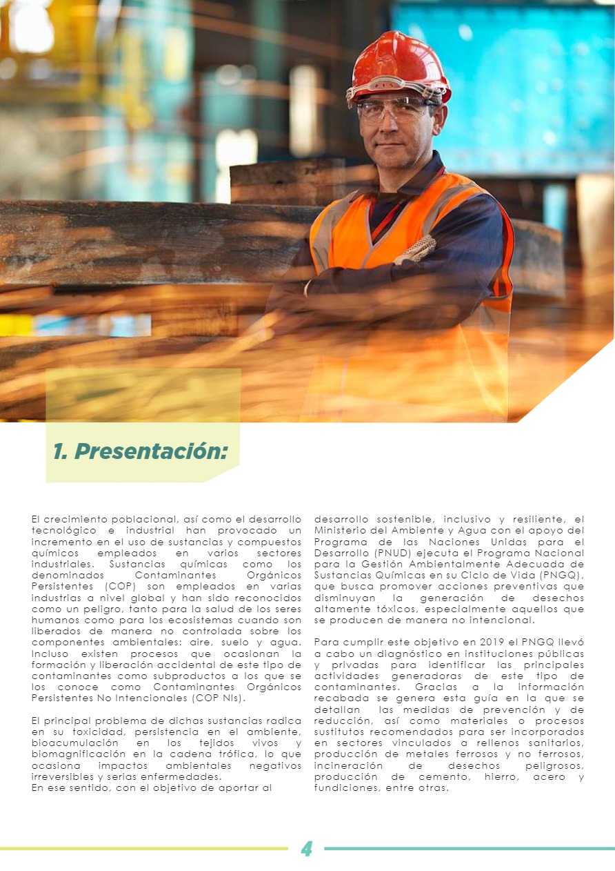 Con base en el diagnóstico realizado por el PNGQ en el año 2019, en instituciones públicas y privadas para identificar las principales actividades generadoras de contaminantes orgánicos persistentes no intencionales (COPNIs), se generó esta guía en la que se detallan las medidas de prevención y de reducción, así como materiales o procesos sustitutos recomendados para ser incorporados