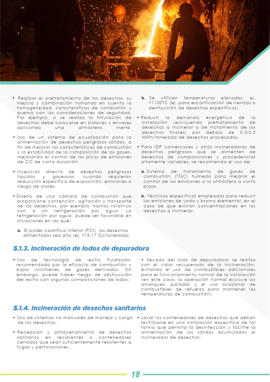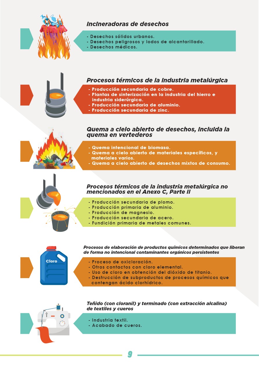 en sectores vinculados a rellenos sanitarios, producción de metales ferrosos y no ferrosos, incineración de desechos peligrosos,