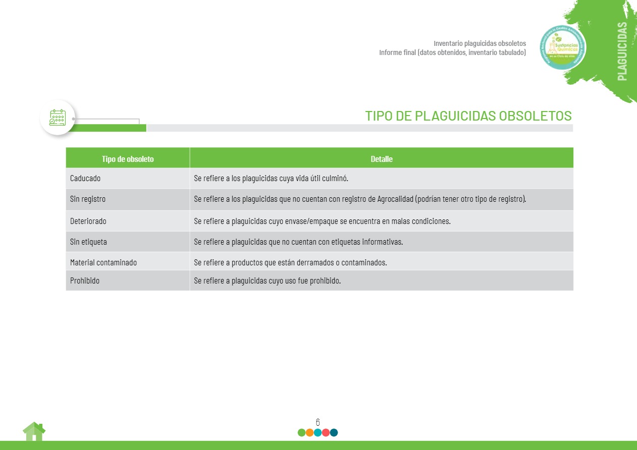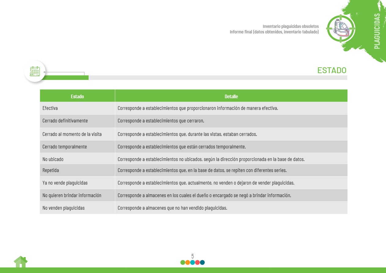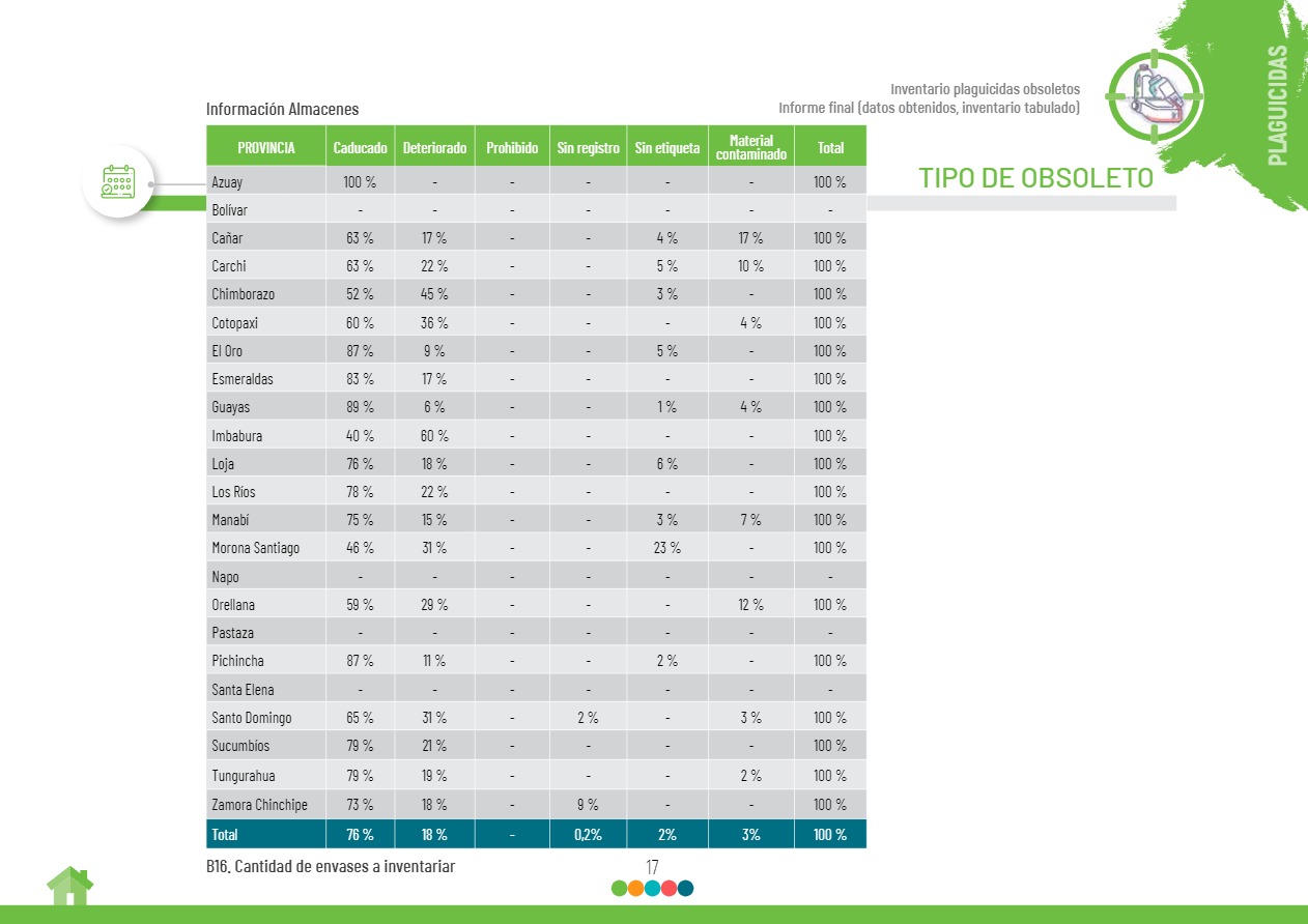 Tabulación y resultados finales del inventario nacional de plaguicidas obsoletos
