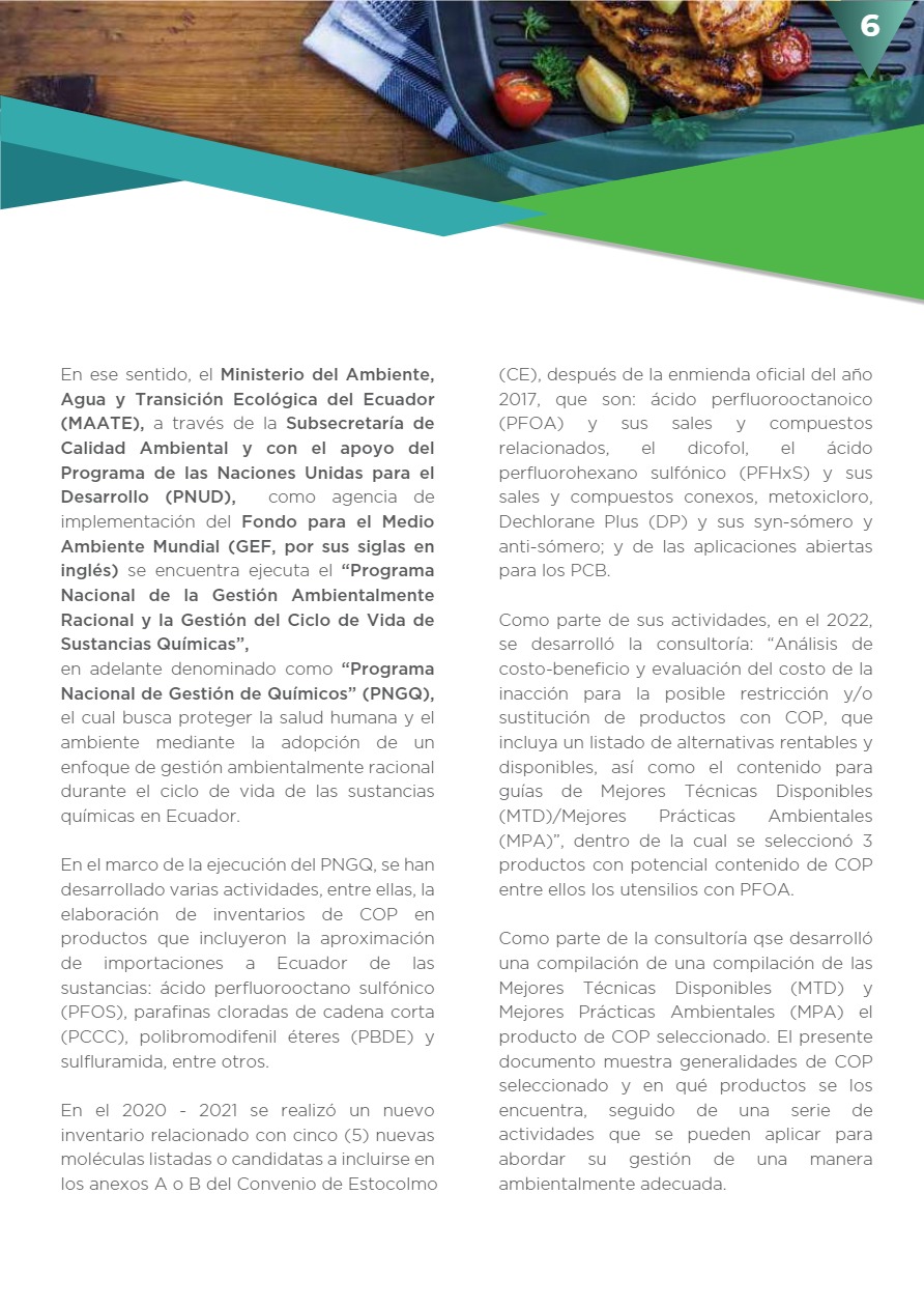 Mejores Técnicas Disponibles (MTD), y Mejores Prácticas Ambientales (MPA), para productos con PFOA con énfasis en utensilios de cocina.