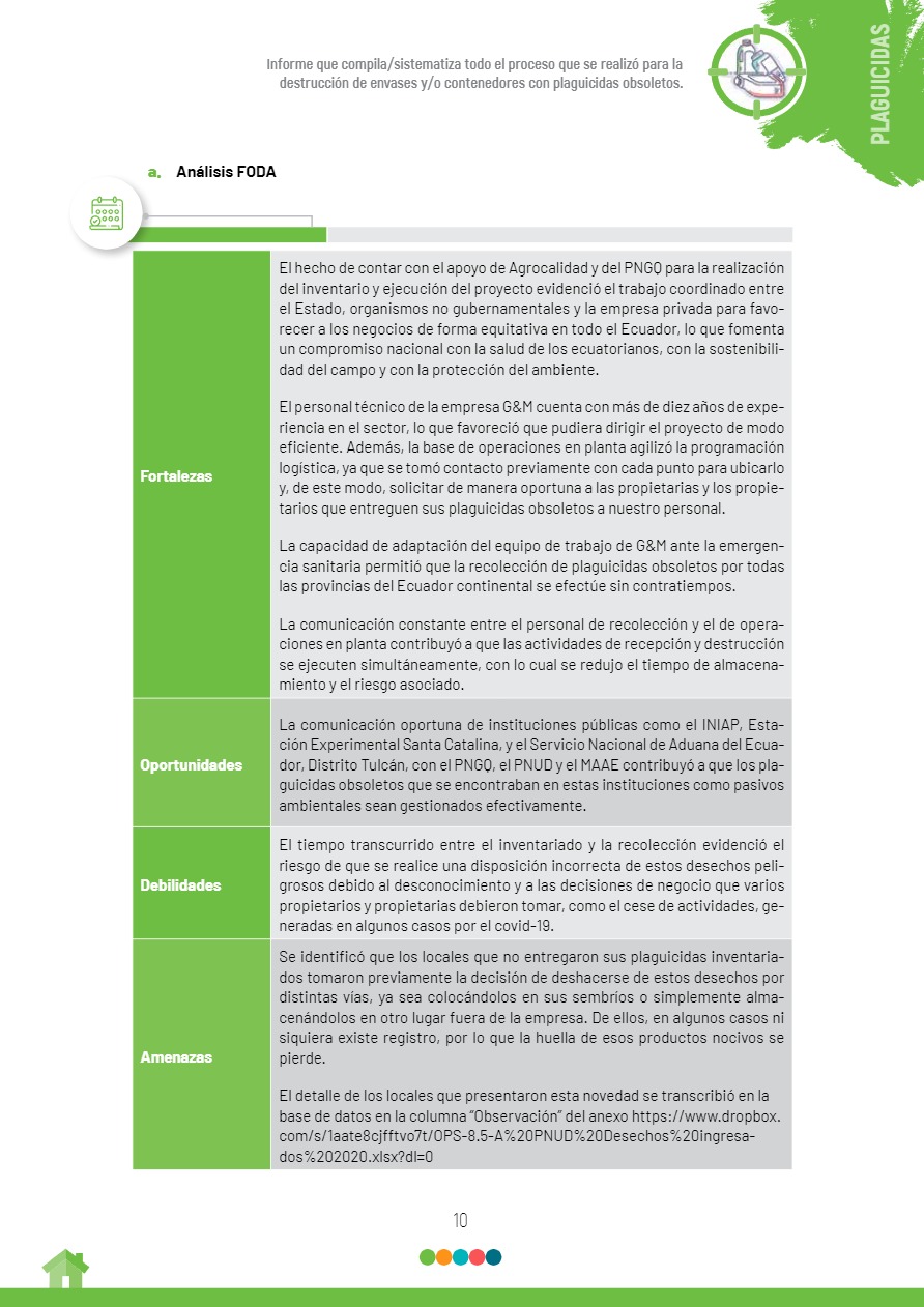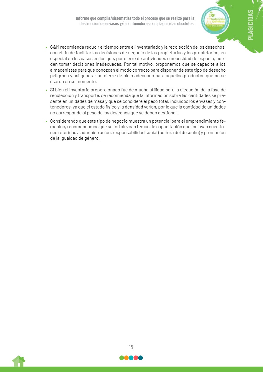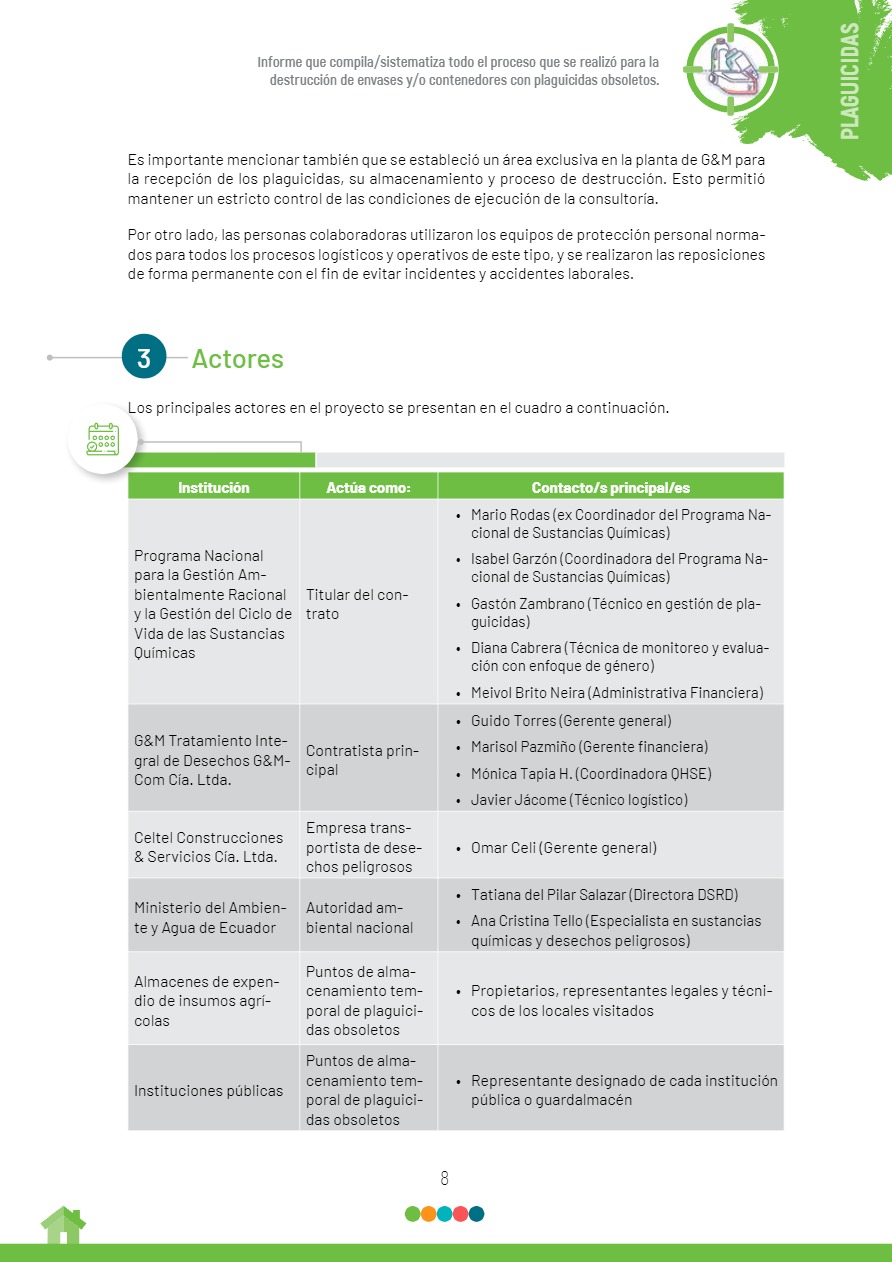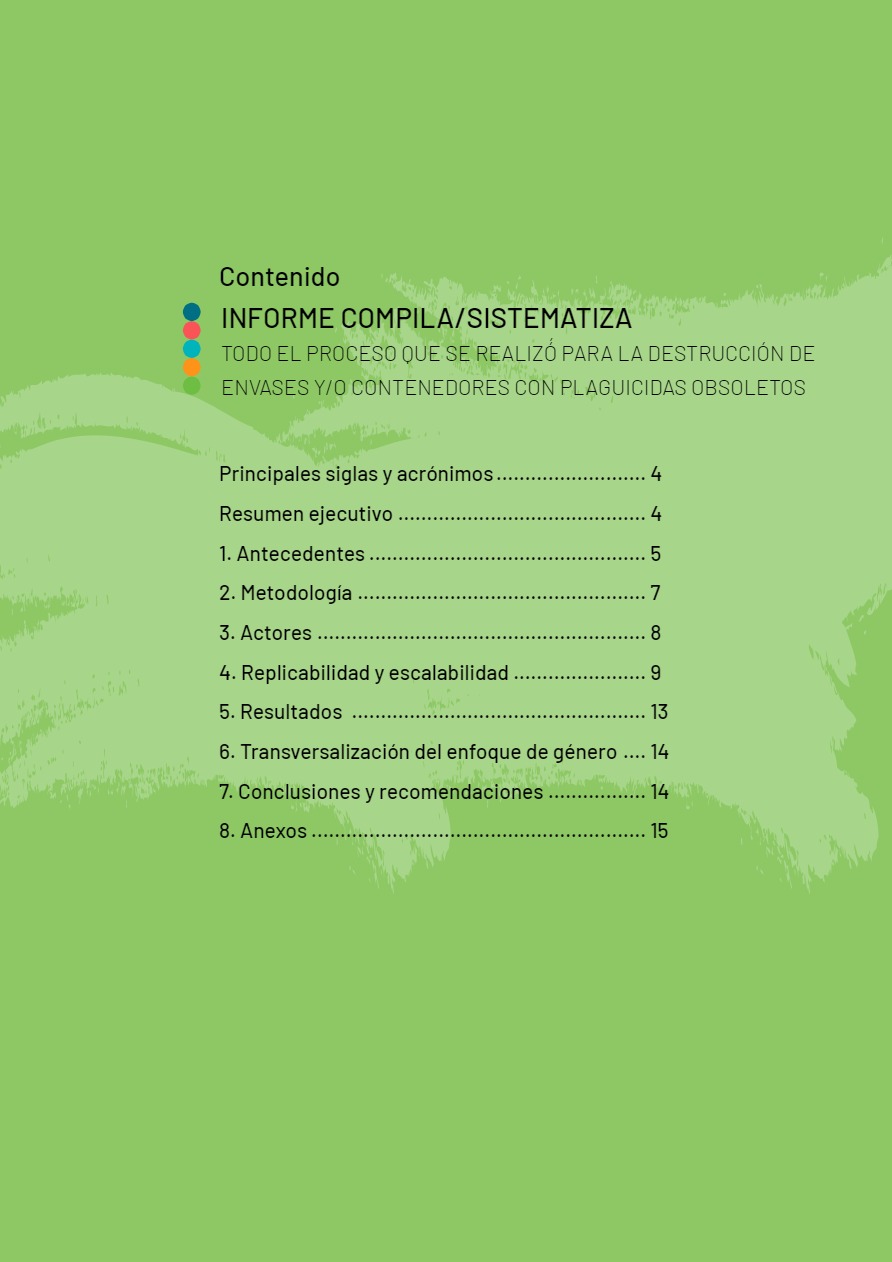 Documento que describe la segunda fase de eliminación de 73 toneladas de plaguicidas obsoletos realizada en el año 2020 por parte del PNGQ