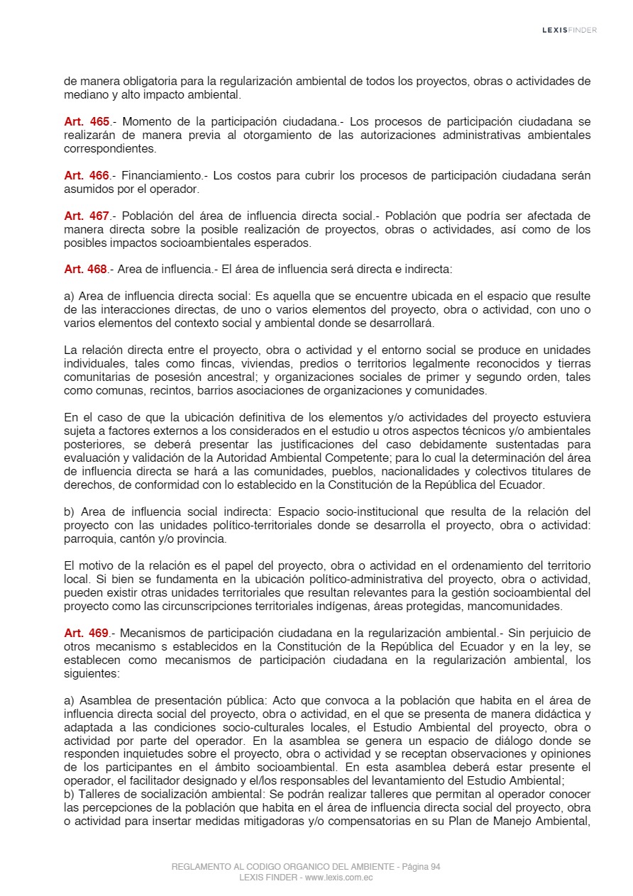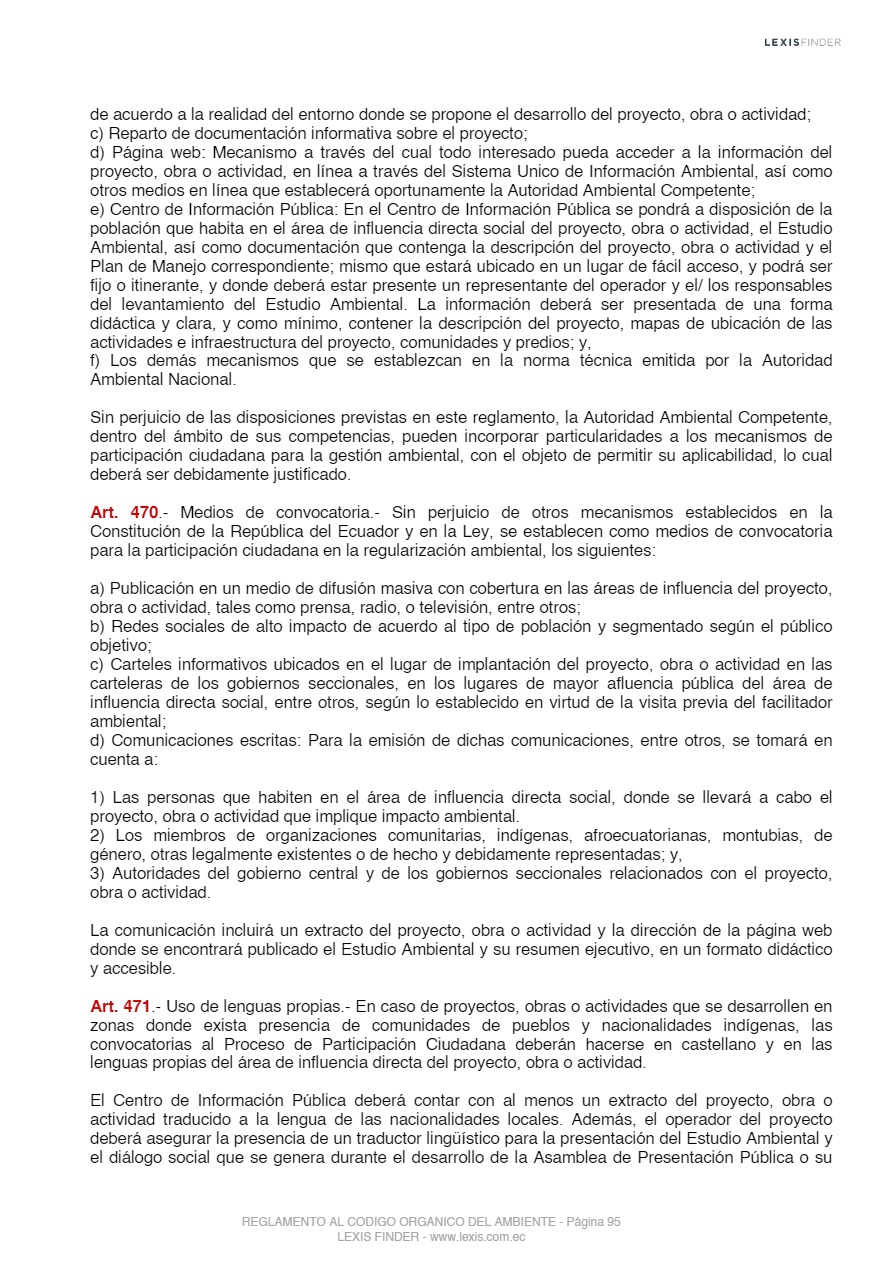 Constituye normativa de obligatorio cumplimiento para todas las entidades, organismos y dependencias que comprenden el sector público central y autónomo descentralizado, personas naturales y jurídicas, comunas, comunidades, pueblos, nacionalidades y colectivos, que se encuentren permanente o temporalmente en el territorio nacional.